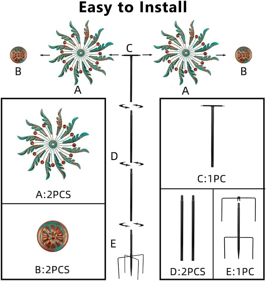 • Easy Installation: The garden spinners outdoor are equipped with complete accessories, and the components can be connected without tools. With simple rotation, the yard spinners outdoor can be assembled in just a few minutes