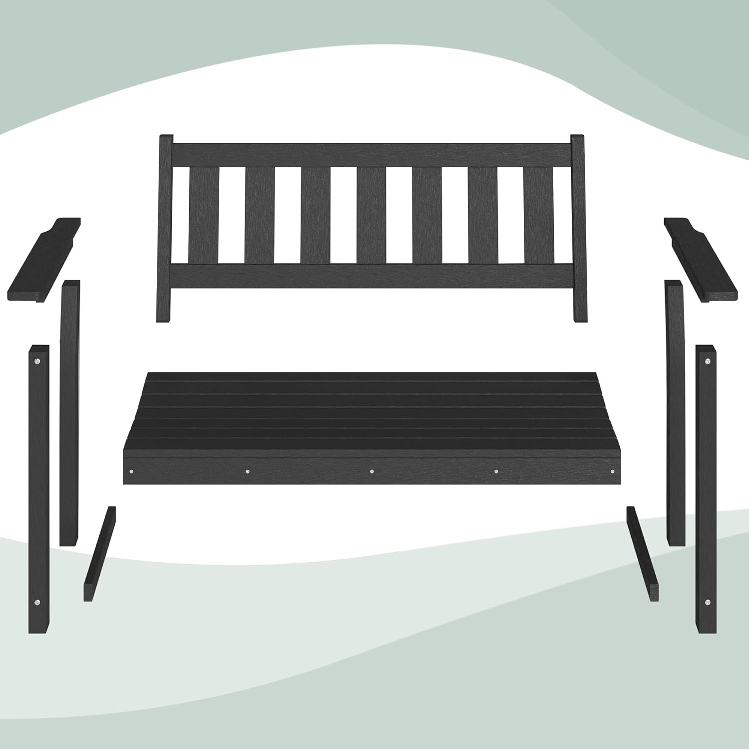 • Durable and Recyclable: This outdoor bench is made from 100% recyclable HDPE plastic, miming wood's natural appearance using advanced technology. Unlike traditional wooden benches, the HDPE material offers superior stability and durability, resisting long-term exposure to the elements and heavy impacts without sustaining damage.