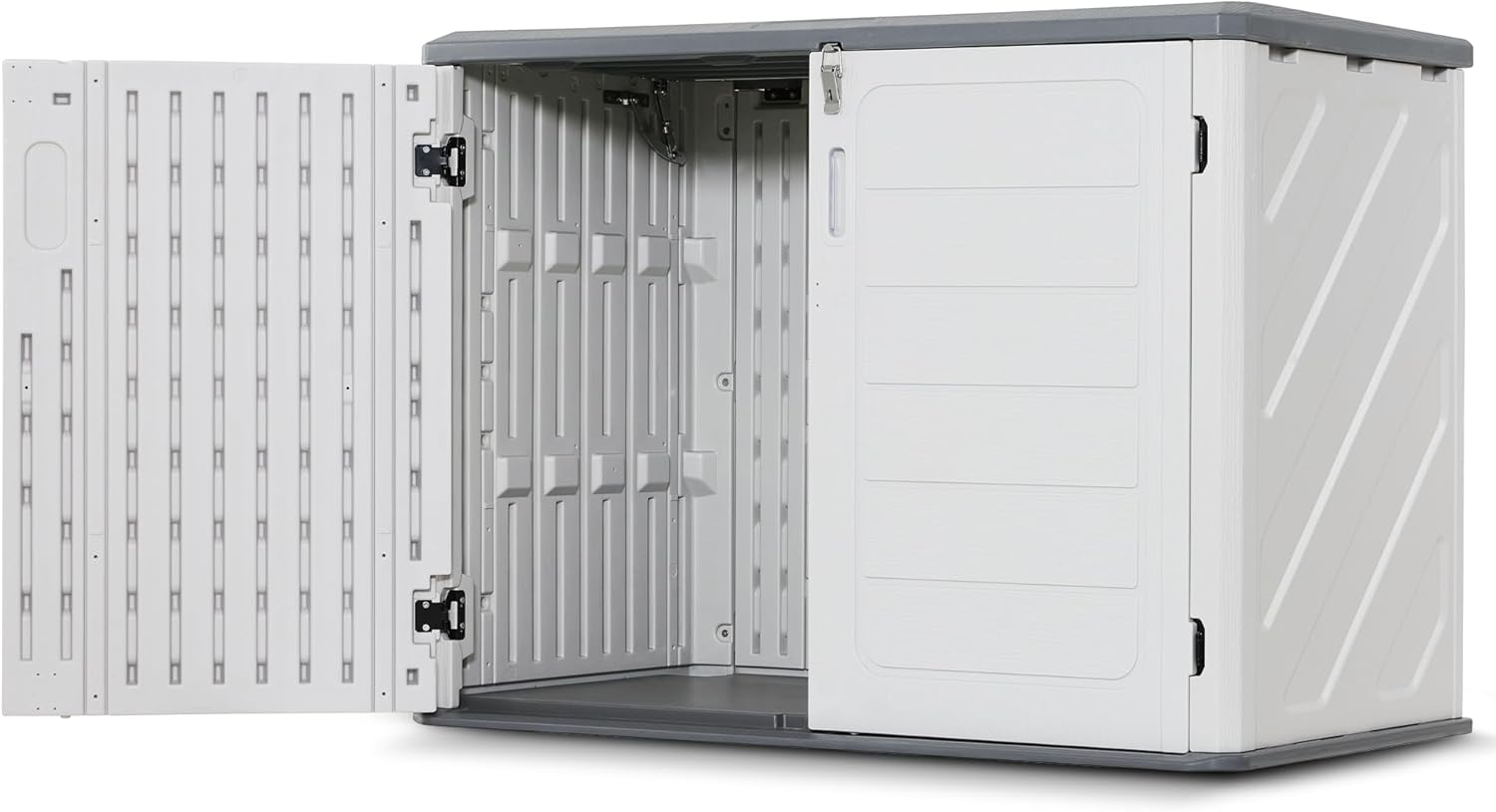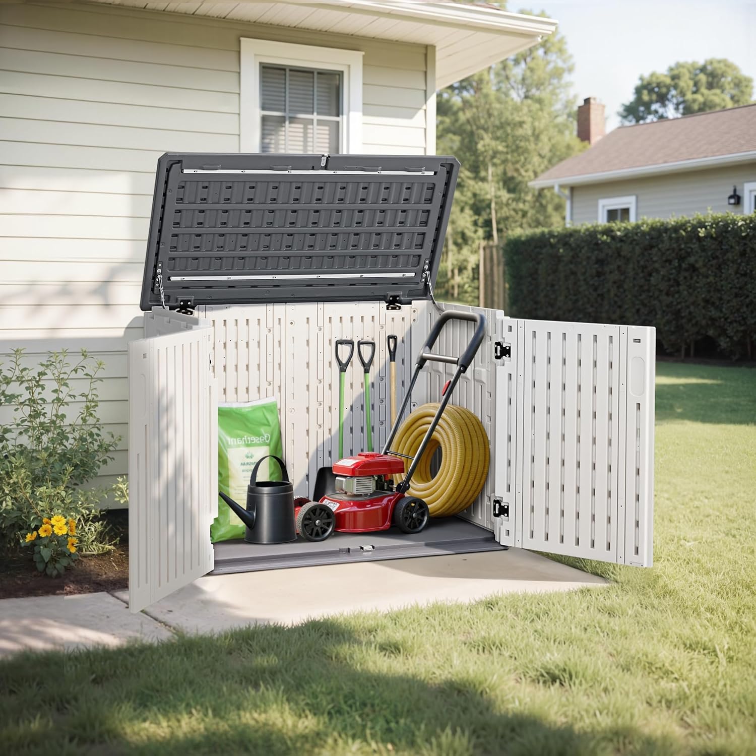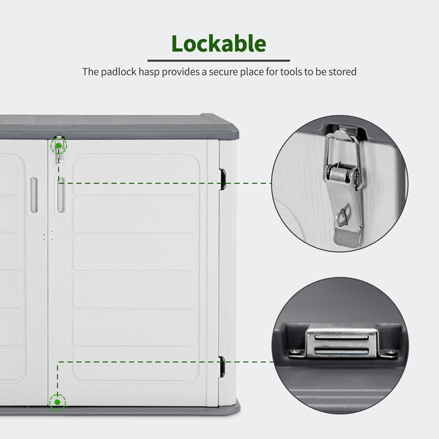 Macrout 25 Cu.Ft Small Plastic Outdoor Storage Cabinet with Floor, 4.3 x 2.5 ft Waterproof Resin Outdoor Storage Shed, Lockable Horizontal Shed for Garden and Patio