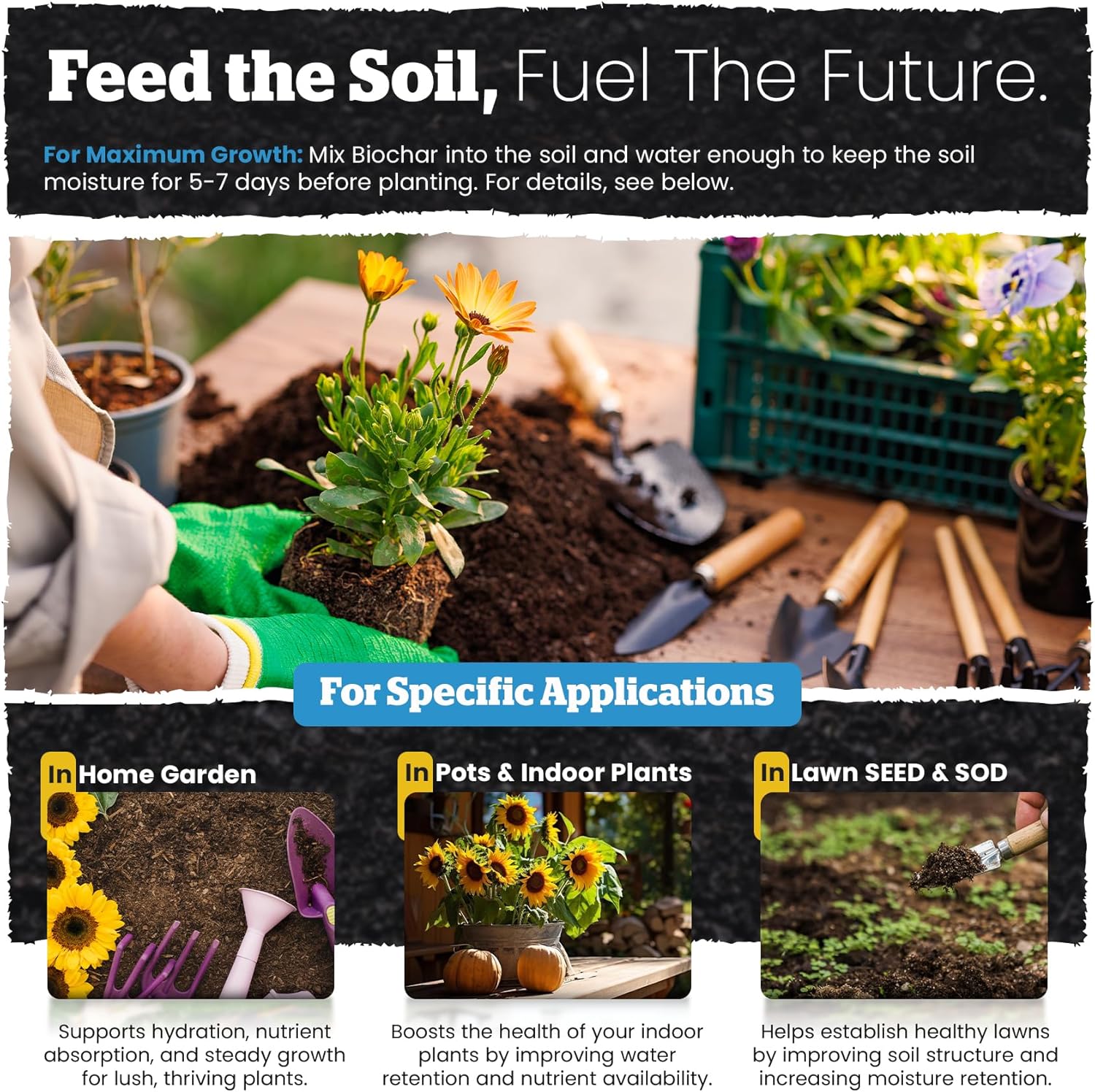 • Sustainable Solution: The organic potting mix is crafted from renewable resources and enriched with biochar for plants, making it an environmentally responsible choice for both soil indoor plants and garden soil for outdoor plants. This innovative indoor plant soil formula reduces the need for chemical fertilizers while supporting carbon sequestration, perfect for eco-conscious gardeners seeking sustainable plant care solutions.