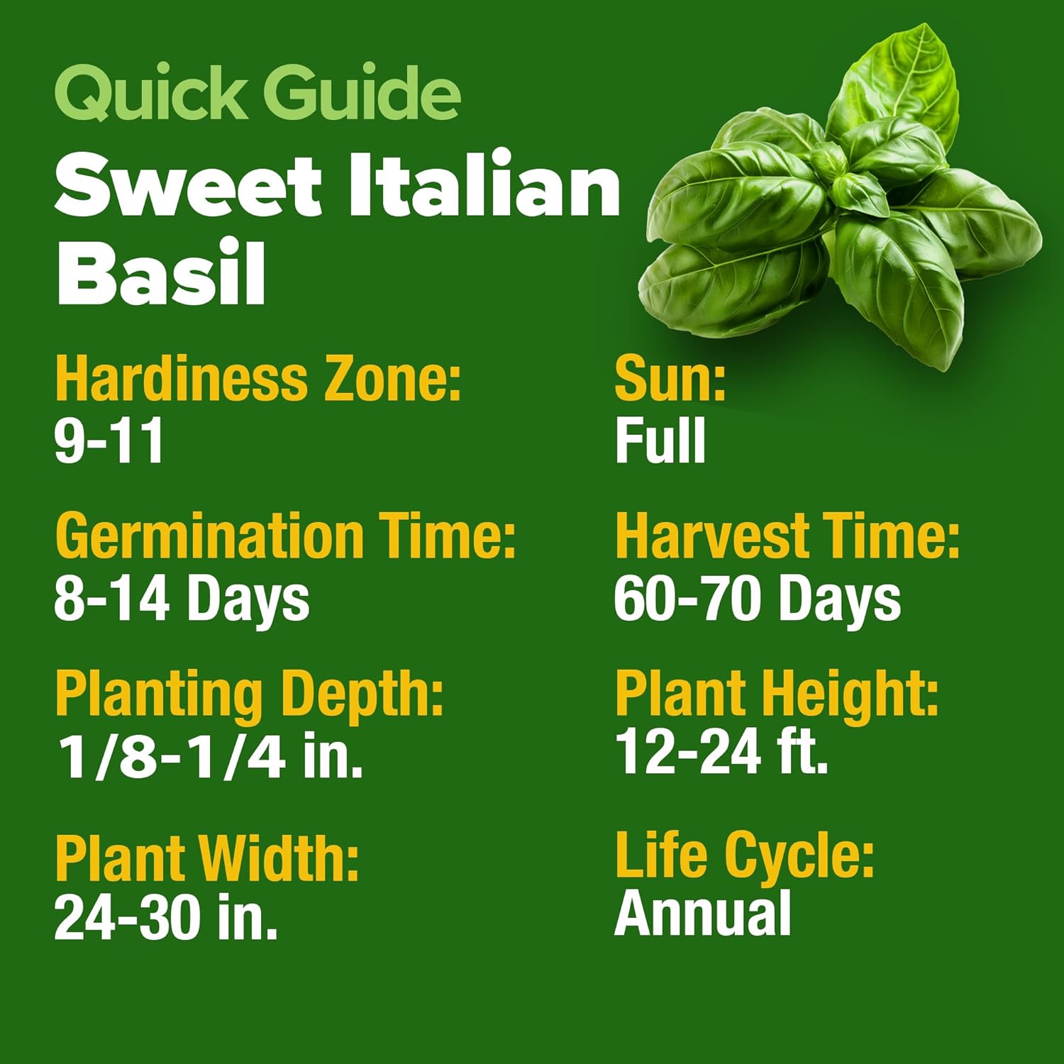 - LOW MAINTENANCE AND HIGH YIELDS β Sweet Italian Large Leaf basil is a hardy, resilient basil plant that requires minimal care once established. With regular watering and proper sunlight, these herb seeds grow up to 24 inches tall, producing large, flavorful leaves with each harvest. Perfect for those looking to grow basil seeds for planting indoors or outdoors with minimal upkeep, this basil delivers fresh herbs without the hassle of constant gardening.