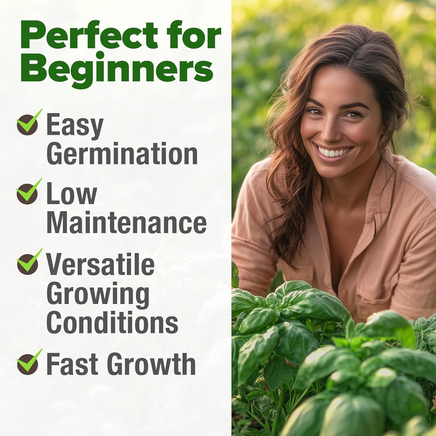 - HIGH-QUALITY, NON-GMO SEEDS SOURCED IN THE USA β These basil seeds are heirloom quality, non-GMO, and sourced responsibly from the USA, ensuring top-tier germination and growth. Safe for your garden, these herb and vegetable seeds grow into vibrant basil plants, free from synthetic additives. Our basil seeds for planting outdoors or indoors allow you to cultivate a clean, natural source of fresh basil right at home, supporting a healthier lifestyle and garden.