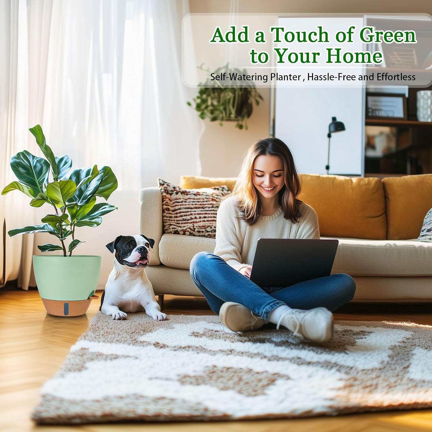 • 🌿 【Self-Watering Feature】The Fielda 10 Inch Plastic Planter comes with a built-in self-watering system that uses absorbent cotton wicks to draw water from the bottom tray into the planter. This ensures your plants stay hydrated with less effort, saving you from frequent watering. Whether you're a busy gardening enthusiast or away for long periods, you can easily maintain your plants' moisture balance, ensuring they get the right amount of water and nutrients.