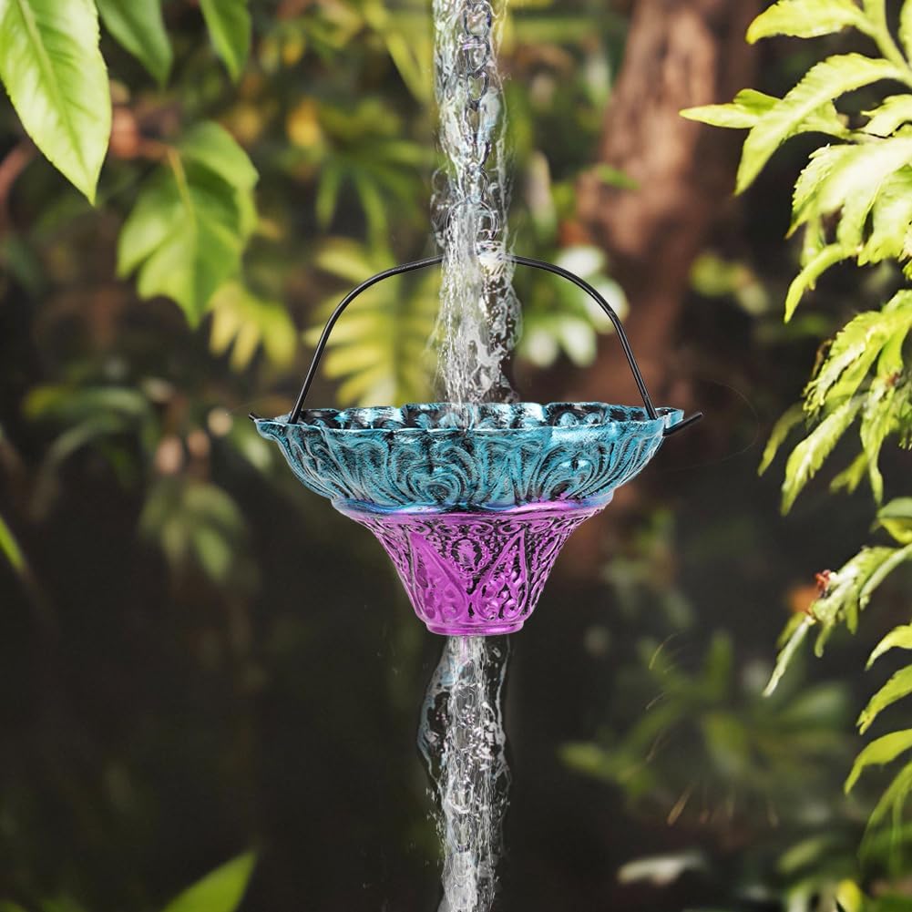• Functional Alternatives: The metal rain chain consists of exquisite 12 blue-purple gradient flower cups. Full length is 10 FT and fitting for single story standard construction. An elegant alternative to traditional downspouts and it will add a chic touch to your roof
