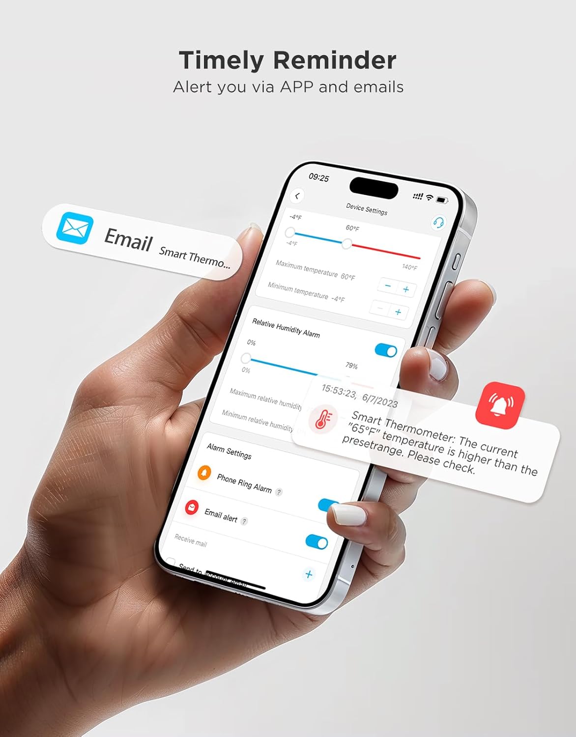 • Remote Alarm: You can preset temperature and humidity values ​​via the app. When the hygrometer thermometer sensor detects a change, you'll receive a notification via app and email, offering enough time to react through the alarm function.Only support gateway H5151/H5042.