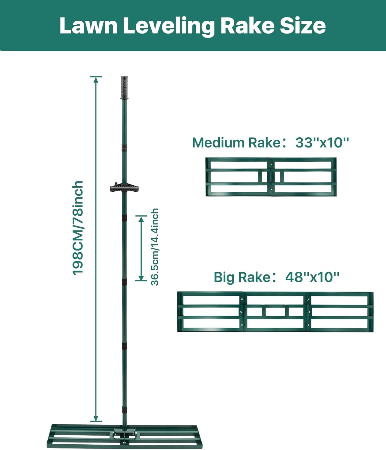 Lawn Leveling Rake 33x10'', Yard Leveling Rake with 78'' Back-Saving Adjustable Handle, Stainless Steel Lawn Leveler Tool for Garden, Backyard, Farm, Golf Course