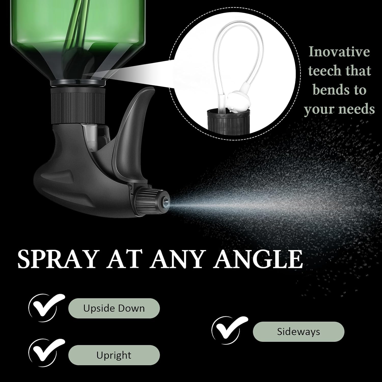 • 360° Spray Bottle: innovative functions, vertical, side, inverted multi angle spraying, ensuring uniform spraying in low and narrow areas
