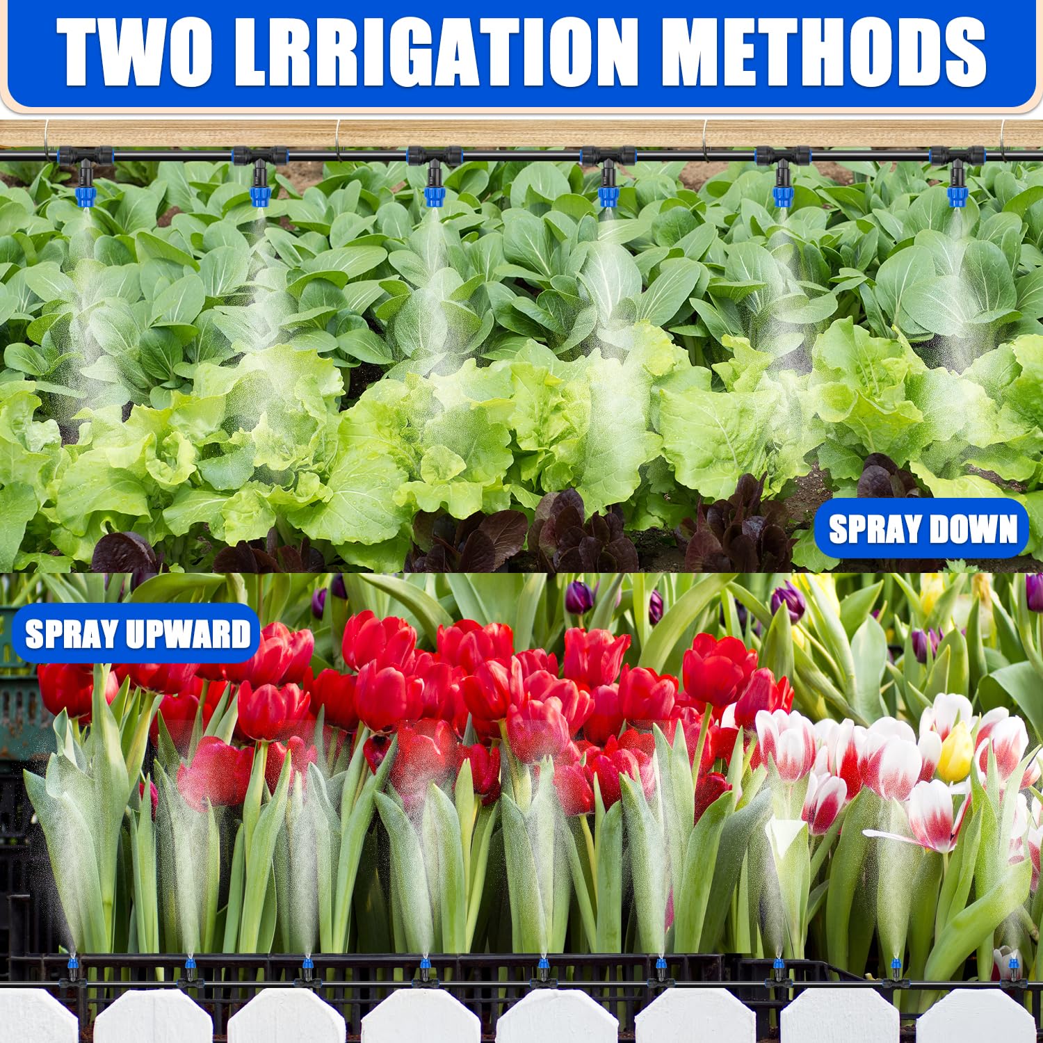 • 【Wide Range of Applications】This system is suitable for various scenarios, including greenhouse irrigation, rooftop cooling, lawn irrigation, gardens, vegetable irrigation, agriculture, flower beds, and more.
