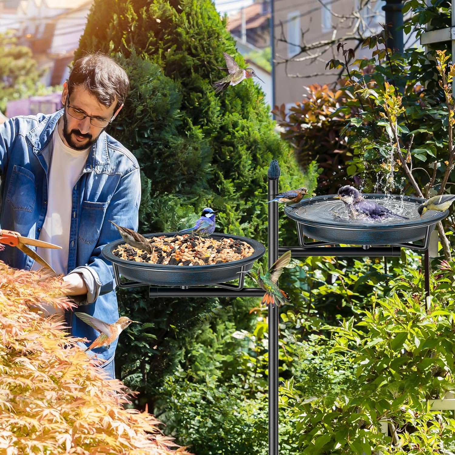 • 【2-in-1 Bird Bathtub & Feeder】After the upgrade, an additional basin has been added, which can meet the feeding and bathing needs of birds at the same time, making it very suitable for outdoor gardens. And it is very easy to clean and fill. Keeping it clean is very important for the health of birds.