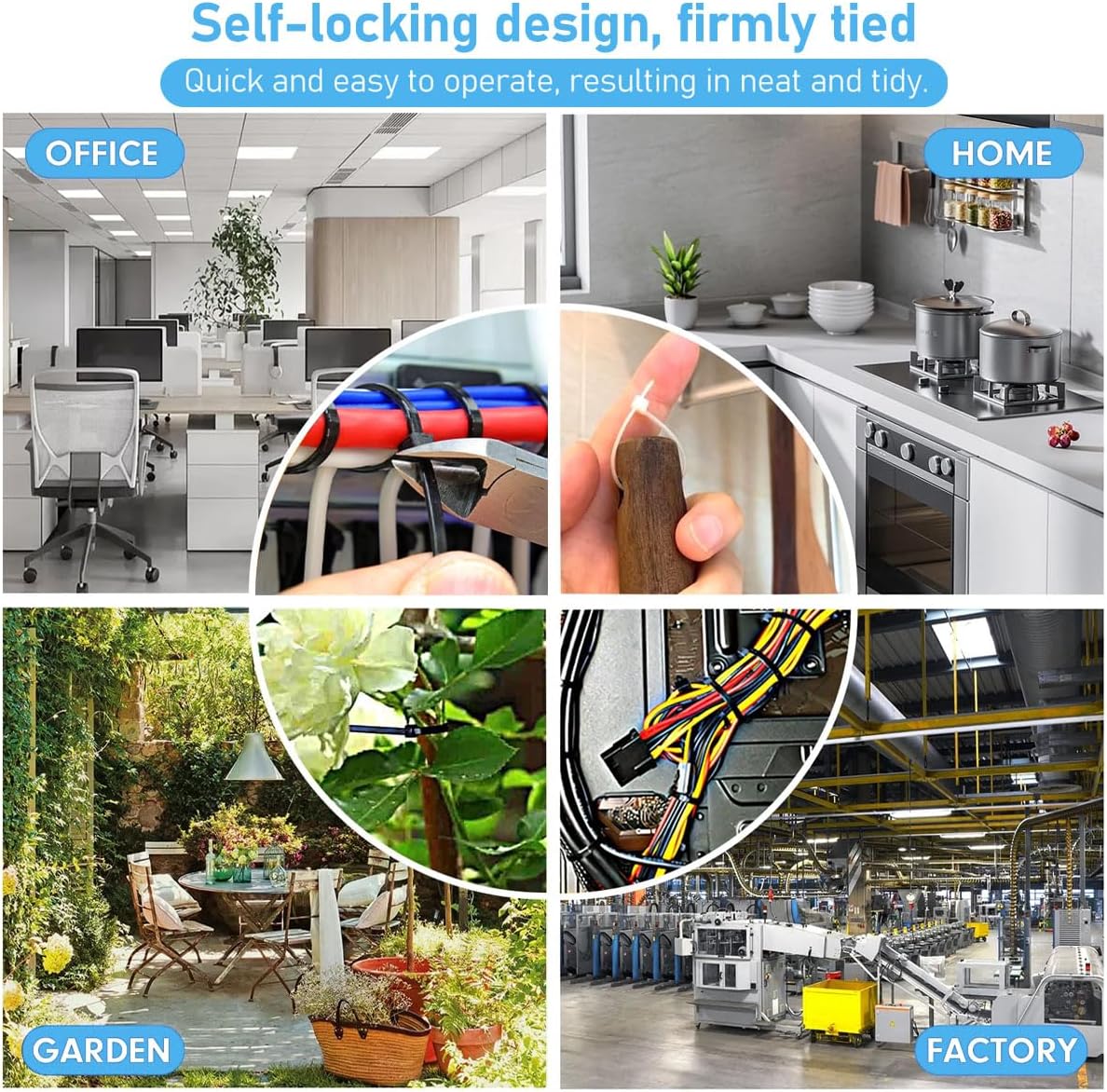 • Multipurpose Zipper: Our large heavy duty zip ties can be used for home, garden, travel and workshop organisation. Easy to use, the self-locking design ensures that cords are bundled tighter and more securely, whilst the zip ties are great for tidying up cables around the home, making them the perfect tool for cable management