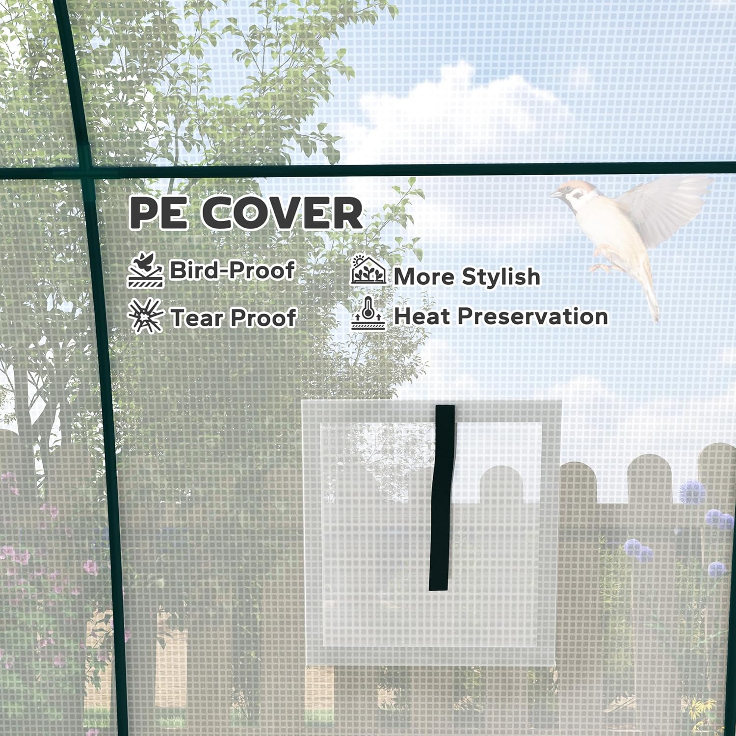 • Reinforced PE Cover: Protects plants from UV scorching while allowing 85% of nourishing sunlight to pass through. The hemmed edging and grid through the middle prevent tearing effectively, prolonging the service life of the hoop greenhouse tent