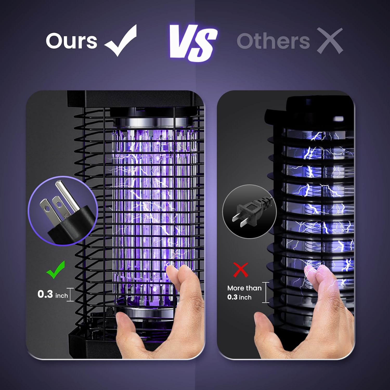 • Instant 2800V Shock & Dual-Chip LED Attraction: Eliminate mosquitoes, flies, and bugs instantly with 2800V high-voltage grids and dual-chip LED lamps which could emit 365nm & 395nm wavelengths precisely attract mosquitoes and bugs. This LED bug zapper indoor/outdoor scientifically lures pests through 2 kinds of UV wavelengths proven to mimic human body heat, ensuring precision attraction for mosquito killer efficiency.