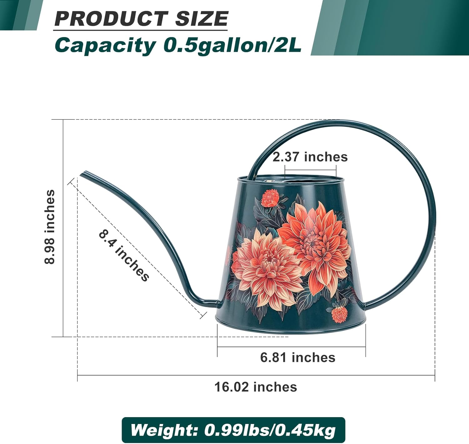 Berry&Bird House Plants Watering Can - Indoor & Outdoor 1/2 Gallon Stainless Steel Water Can with Long Spout Garden Decoration for Flower Bonsai Succulent Gardening Large Watwer Bottle(2L/68oz,Dahlia)