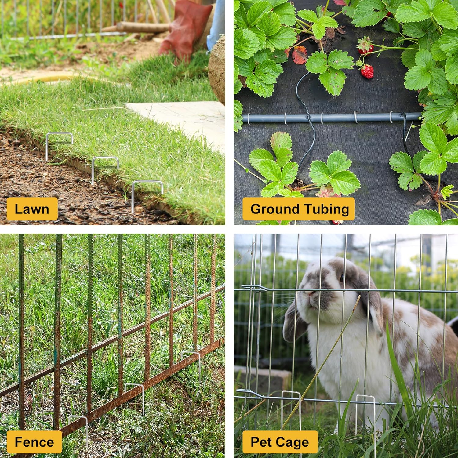 • High Application: Our ground staples are suitable for fixing various garden items, like meshes, tarpaulins, hoses, wires, irrigation tubing, landscape edging etc,.These U-Hooks also can be used to secure decorations on the ground at some festivals or parties.