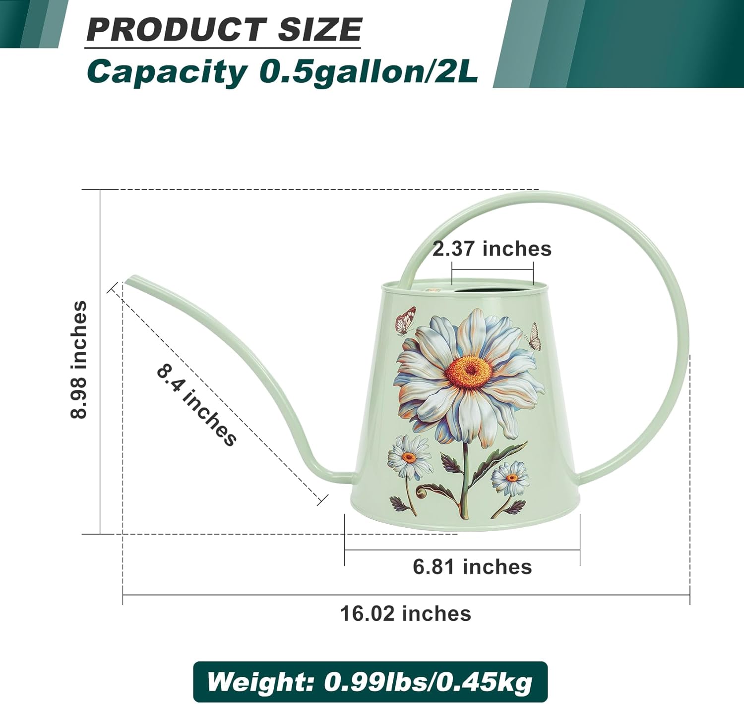 • [HIGH-QUALITY STAINLESS STEEL: This watering can is made of stainless steel. After many polishing surfaces, the smooth texture can resist daily scratches, corrosion and is not easy to rust. The curved handle with no sharp edges makes it easy and comfortable to carry around one-handed even full. The welds around the bottom of the spout and around the two points where the handle connects to the body are attached well to prevent it from leaking.