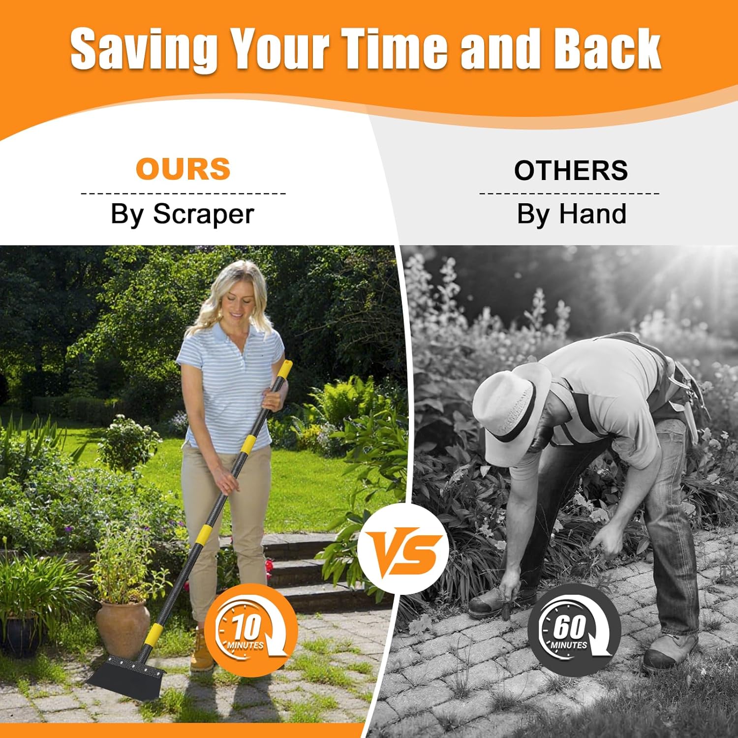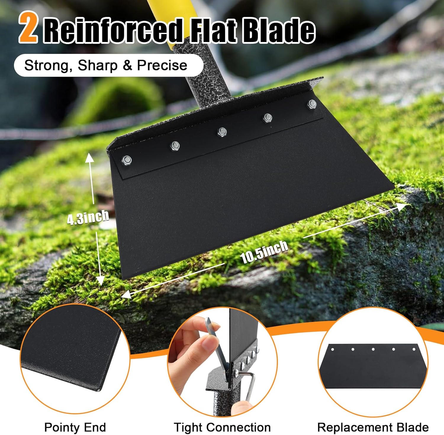 Garden Flat Shovel,60 inch Long Handle Manual Stand Weeding Tool with 2 Spades,Heavy Duty Multifunctional Garden Cleaning Shovel Spade,Floor Scraper for Weeding Edging Snow Ice Removal Tool