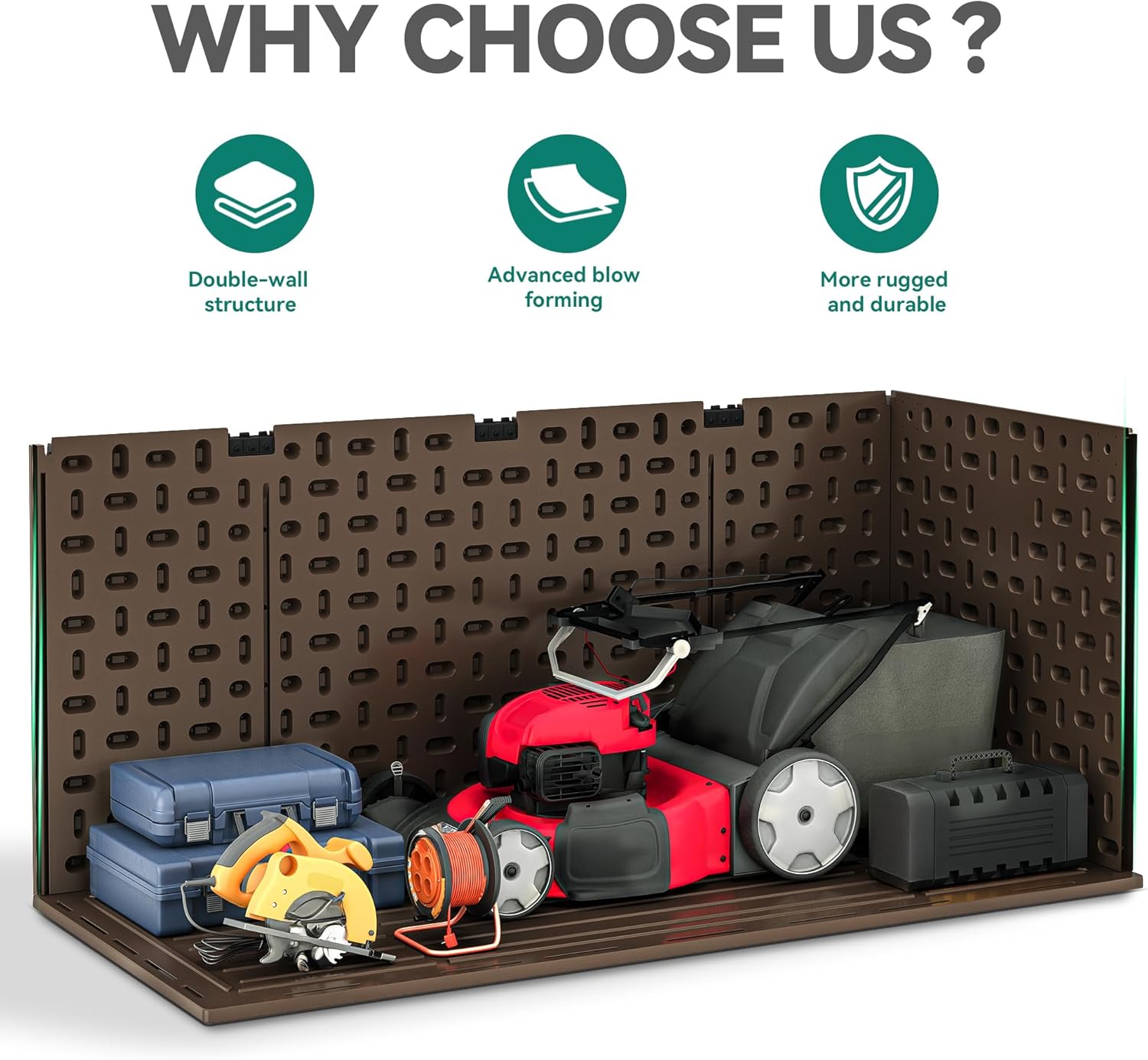 • Double-Layer Structure: Our all-weather resin deck box stands out with a double-layer structure and enhanced with internal reinforced steel beams, providing durability and resilience for outdoor use