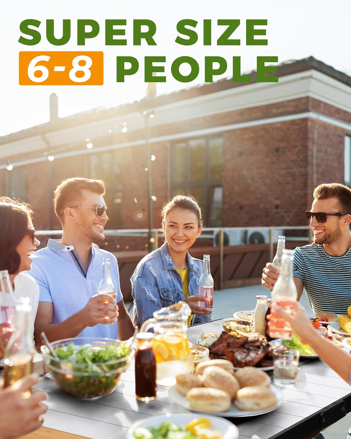 • 【Large Folding Camping Table】The folding camping table spacious desktop area is large enough for 4-6 people,27.5 inches height and triangle structure stent design of camping table can give you enough and comfortable space to put your legs.