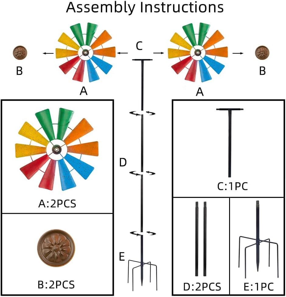 • Easy Installation:This pinwheels for yard and garden is easy to install and remove without any tools, just screw the lid and metal rod