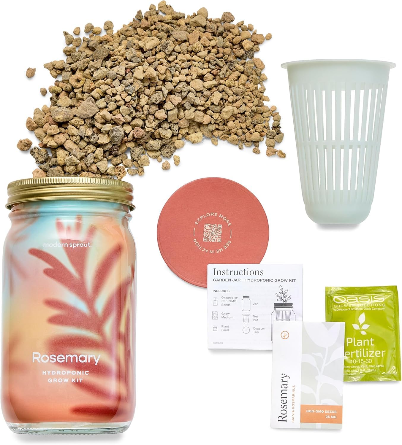 • Easy Hydroponic Growing: Grow fresh lavender and rosemary easily in your indoor herb garden using the self-watering hydroponic Garden Jar; Simply add water, drop in the included organic lavender or rosemary seeds, and place the jar in a sunny spot; Seeds sprout within 5 to 10 days and are ready to harvest in 2 to 3 months; No soil, no pests, no transplanting - just healthy, nutrient-rich herbs all year round; And with our Thrive Promise, we’ve got your back if your plant doesn’t flourish