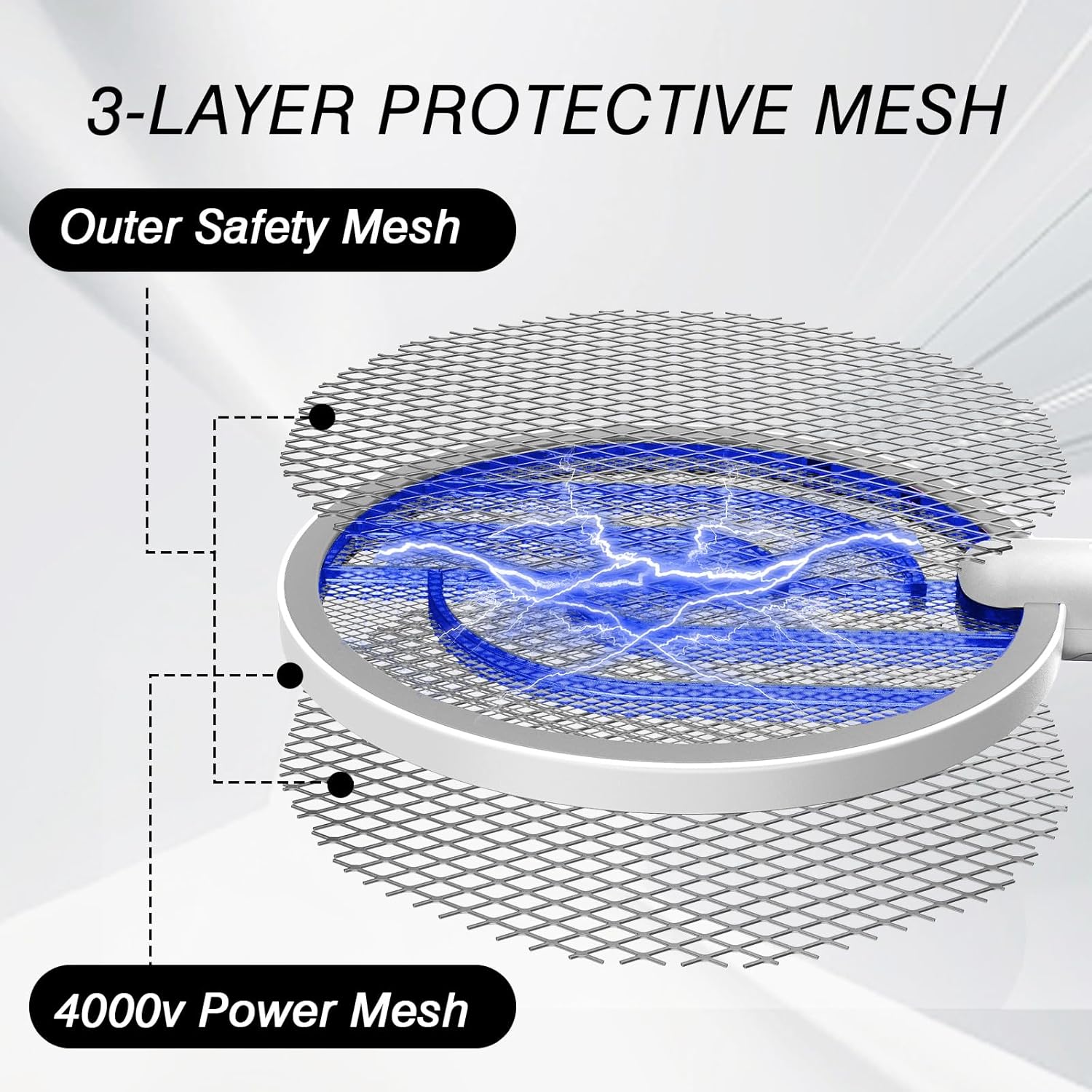 Bug Zapper Racket, 2 in 1 Electric Fly Zapper USB Rechargeable, 4000V Electric Fly Swatter with 3 Layer Safety Mesh, Indoor Outdoor Bug Zapper Racket for Kitchen, Bedroom, Camping(2 Pack