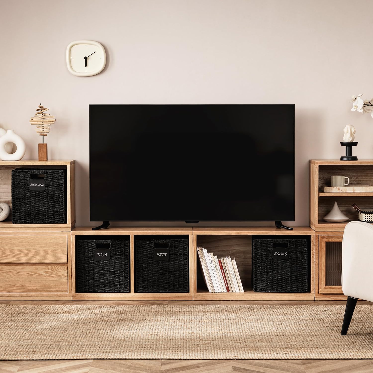 UBBCARE 2 Pack Wicker Basket, 10.5×10.5 Storage Cubes with Label, Foldable Cube Storage Bin with Handle, Square Storage Basket for Shelves, Woven Paper Rope Basket for Organizing, Black