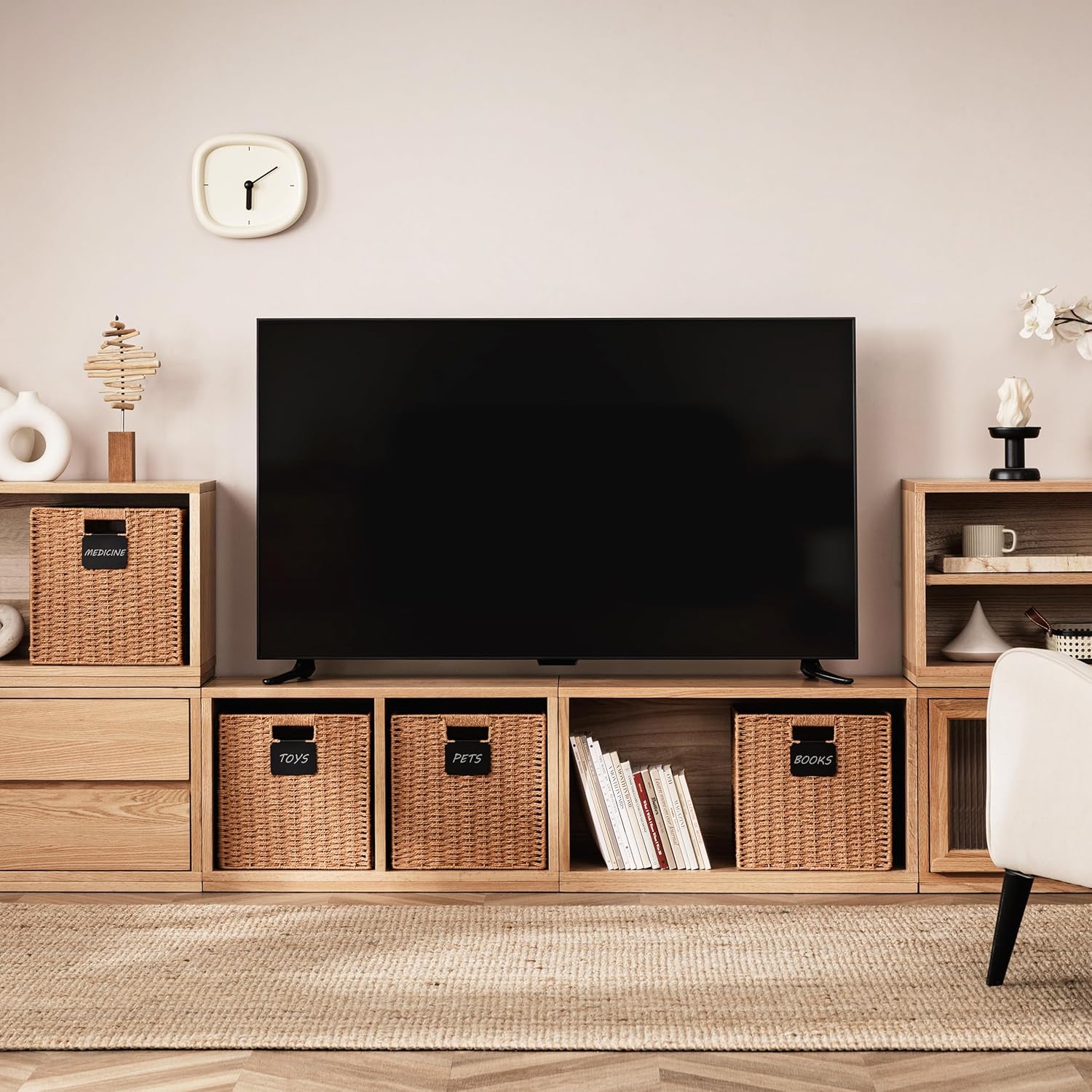 • Perfect size basket: 13L×13H×12.2W basket for storage, large capacity, convenient to store more daily necessities. The size of these storage cube bins fits the IKEA KALLAX shelf unit series, living room TV cabinet, shelves, closets office table and nursery room cube bookshelves.