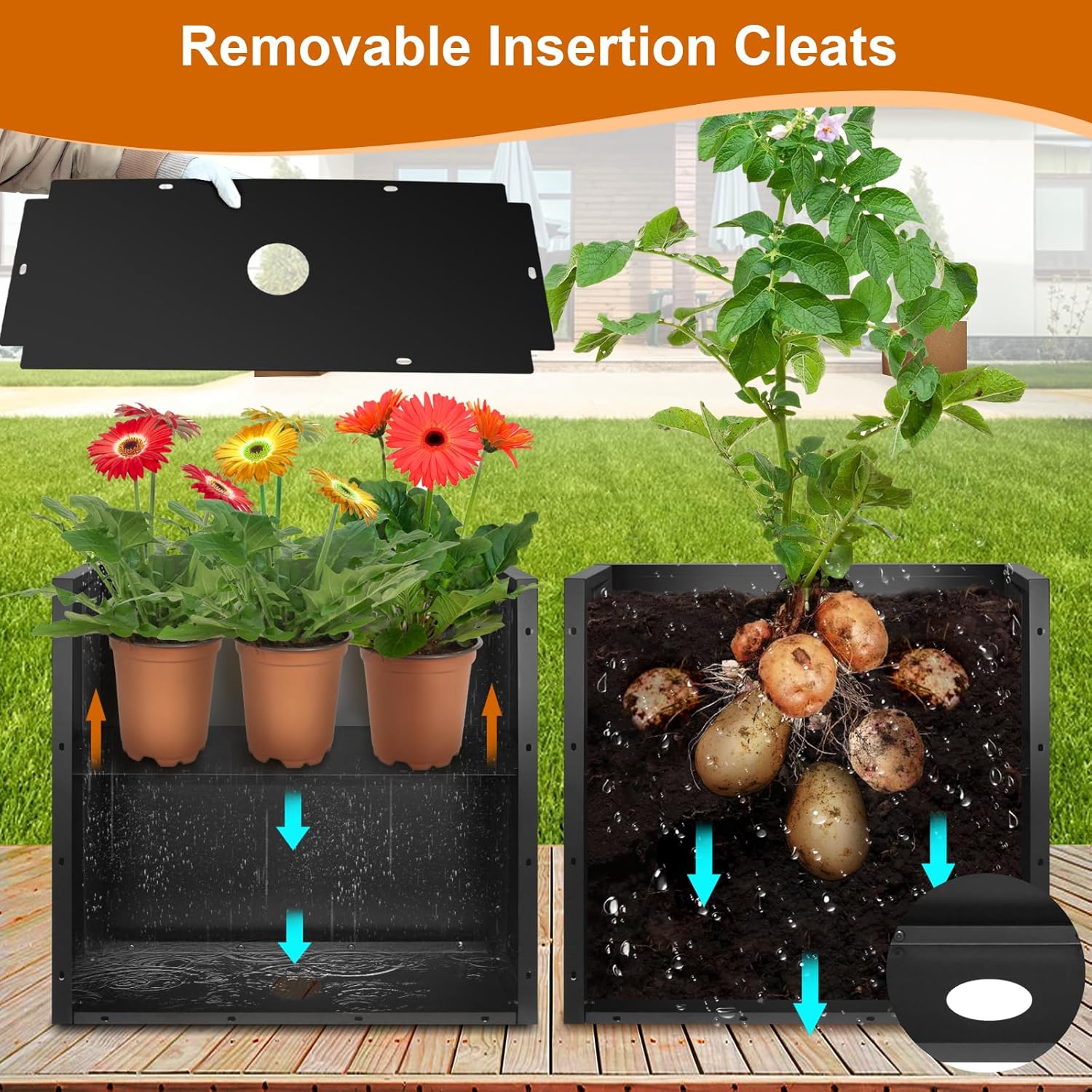 • 【Removable Insertion Cleats】:Our planters are equipped with removable insertion cleats, which can either be used to place a variety of pots on the upper level or filled with soil to grow plants, or you can remove the cleats and place some large plants for different heights, in addition, there is also a round drainage hole at the bottom of the planter box, which will allow your plants to grow healthily