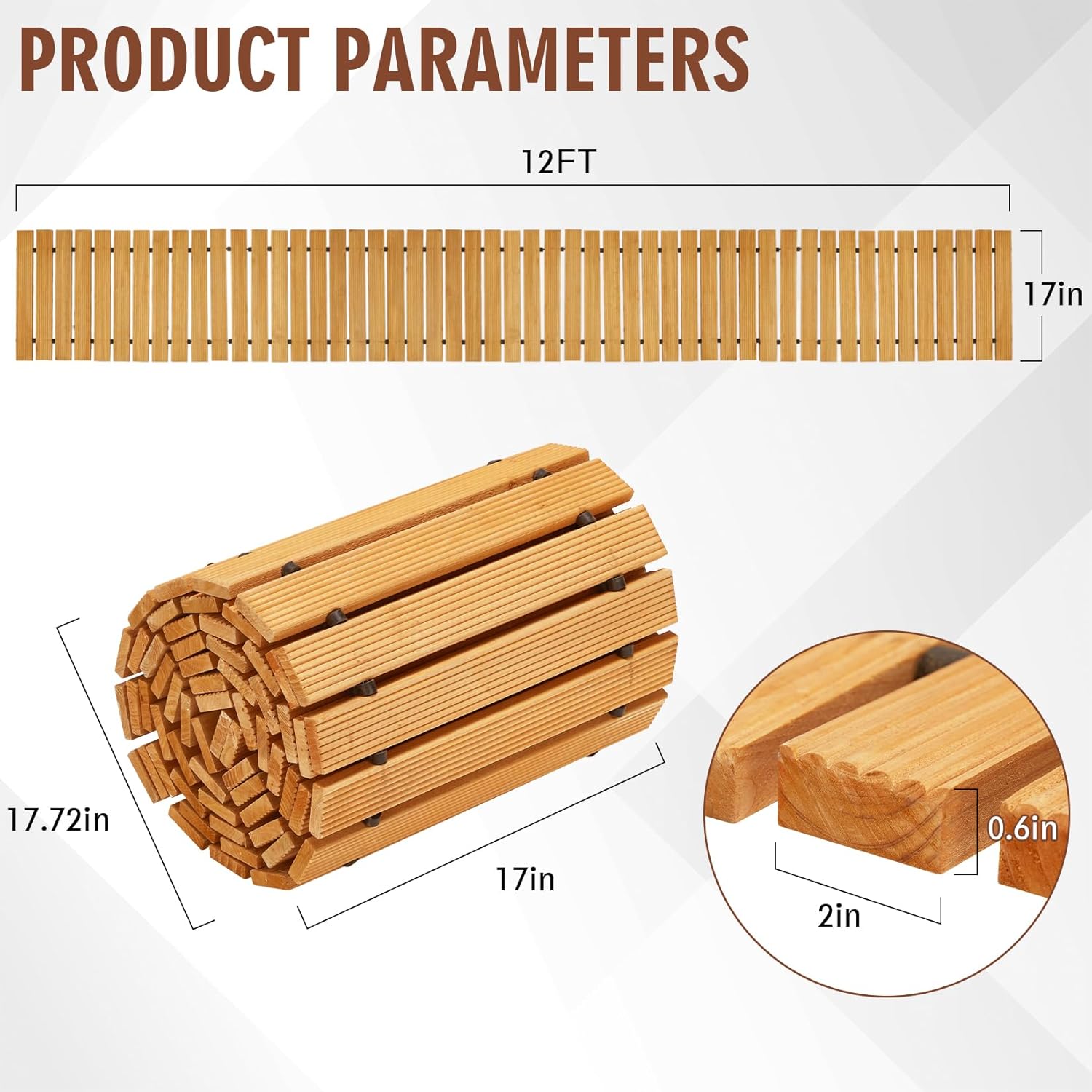 • Convenient Maintenance: Our wooden walkway path does not require assembly or accessories, and can be used simply by taking it out of the box, greatly enhancing the customer's experience. It can be easily cleaned through high-pressure water pipes.The rollable design of the wooden floor also makes it easy to store. When you're not using it, you can roll it up and store it, occupying only a small corner