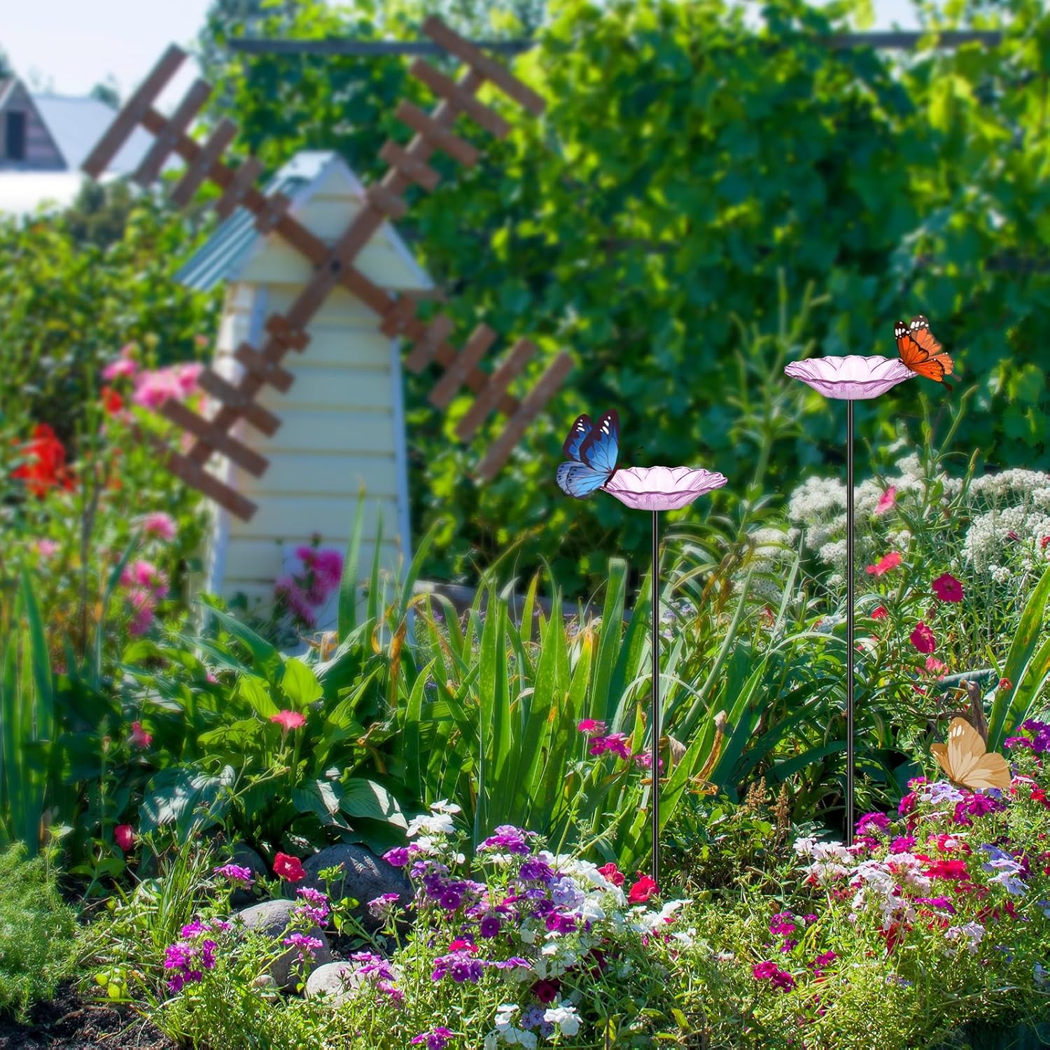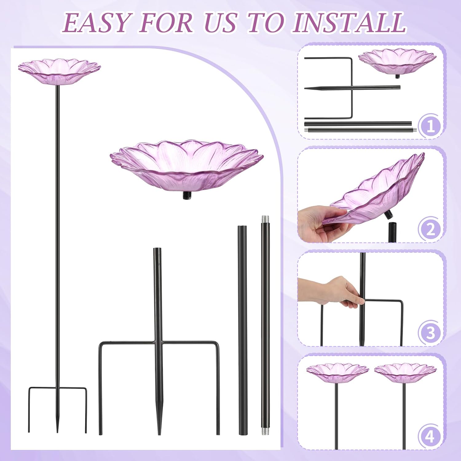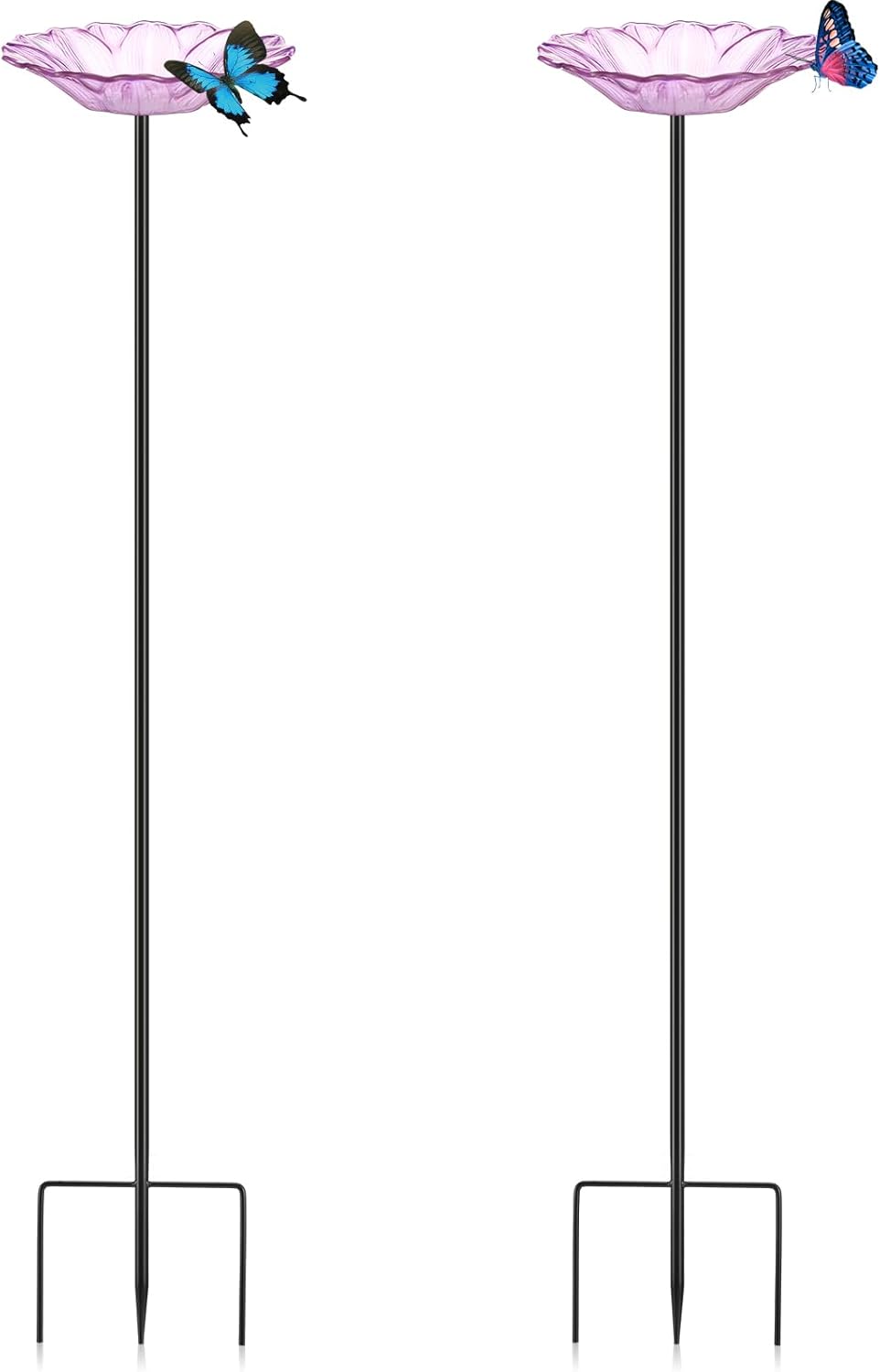 • Attract More Pollinators: our butterfly feeder doesn't just add aesthetic value to your garden but also attracts butterflies and other beneficial pollinators by offering delightful nourishment; The feeder is made of gorgeous flower shaped glass bowls and metal stakes for a steadfast setup