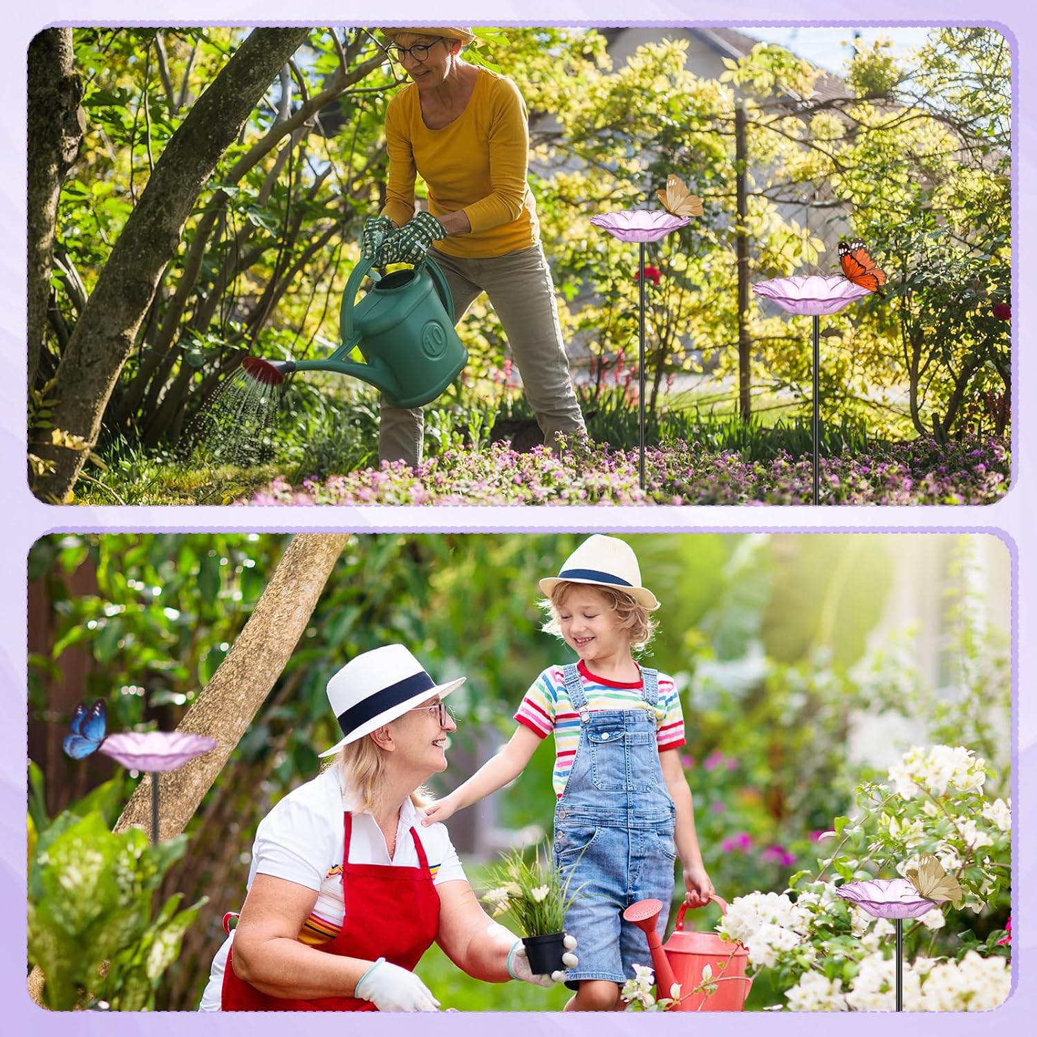 • Abundant Quantity and Size: the set includes 2 packs of butterfly feeders, about 36" H, installed (4" ground stake); Bowl: 8" diameter x 1-1/4" deep; Providing plenty of space for your winged visitors; The sufficient quantity enhances the spring ambiance in your garden