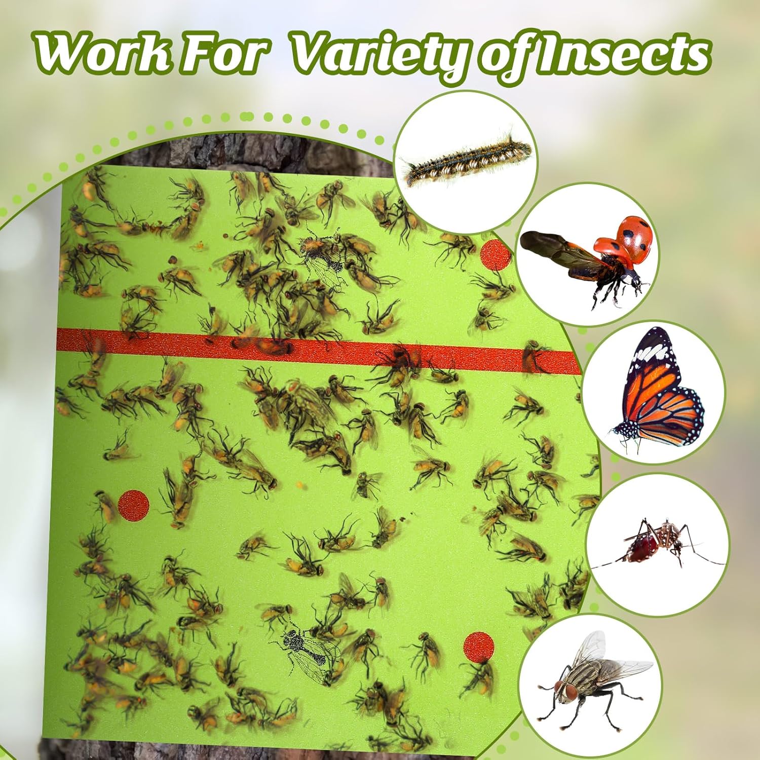 • Durable and Long Lasting Stickiness: the fly paper strips are made of thick glue and waterproof paper, ensuring long lasting stickiness; Once the pests are caught, the adhesive of our outdoor fly tape restricts their escape, trapping flies, moths and other flying creatures to protect the health of your garden plants