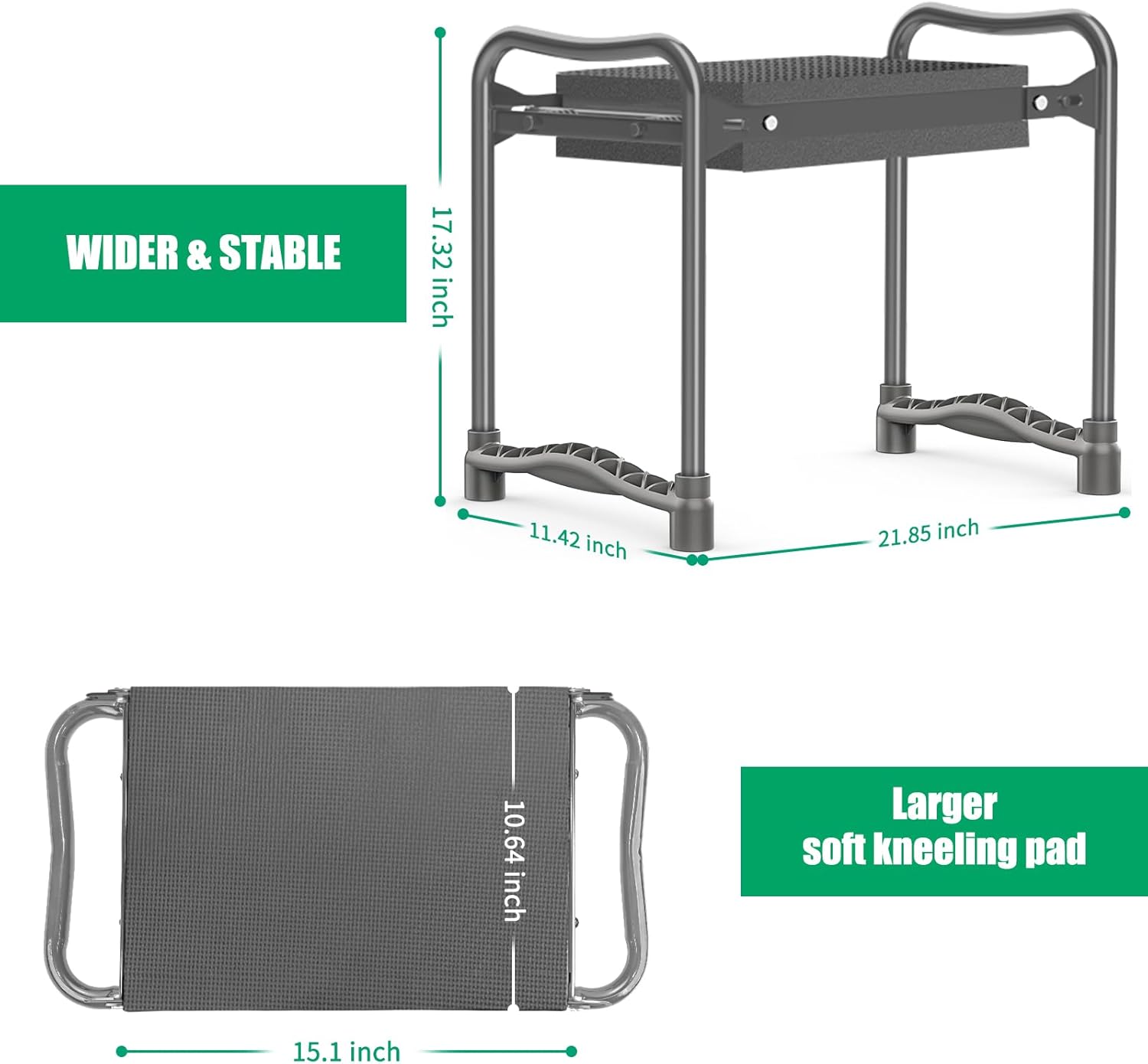 TomCare Garden Kneeler and Seat 10.64” Wider Larger Soft Kneeling Pad Garden Bench with 2 Large Tool Pouches Heavy Duty Garden Stool Foldable Tools Gardening Gifts for Women Men Gardeners,Grey