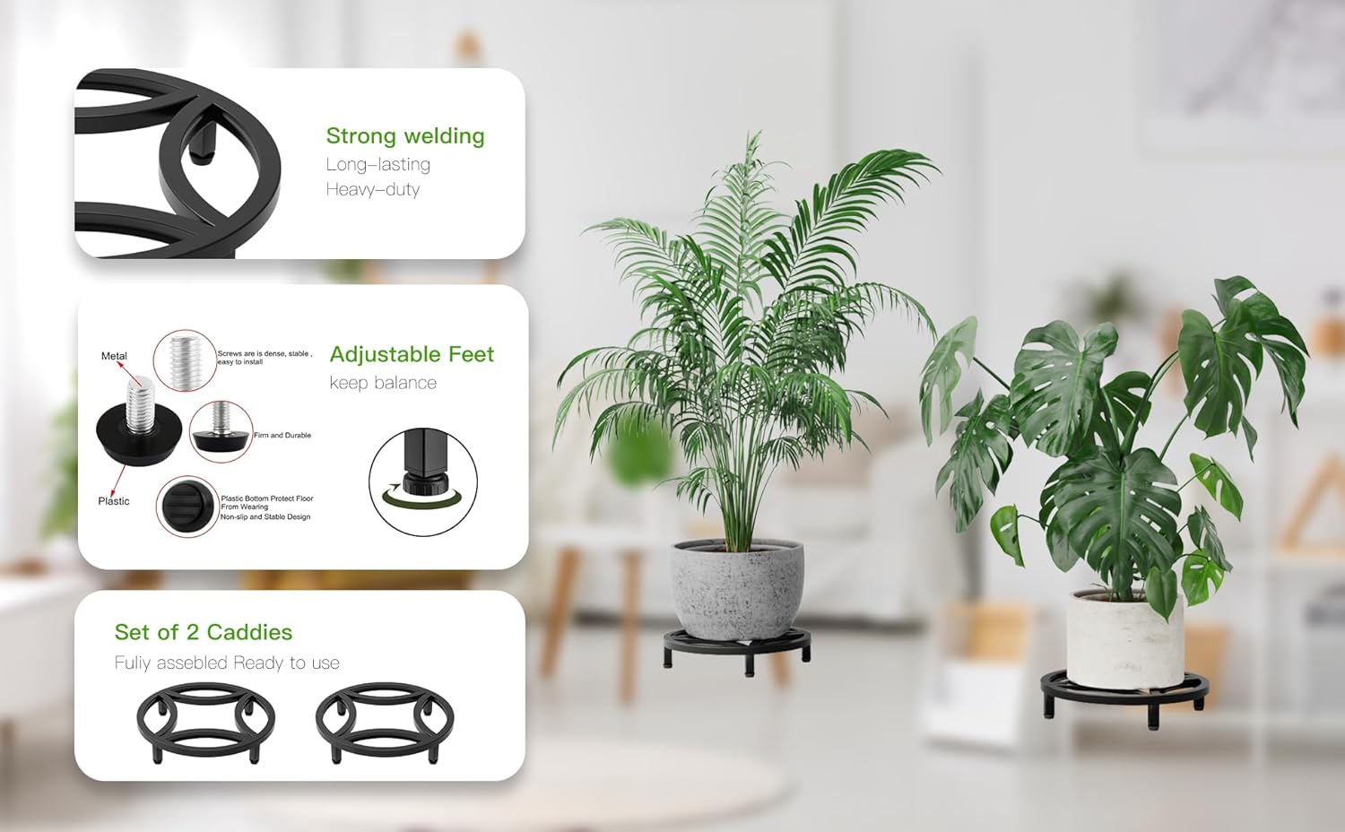 • Zhongma 2 Pack 11.8" Sturdy Potted Plant Stand Flower Pot Holder Heavy Duty Construction, Low Plant Stand for Home Indoor and Outdoor, Sturdy plant riser and saucer without Installation Required.