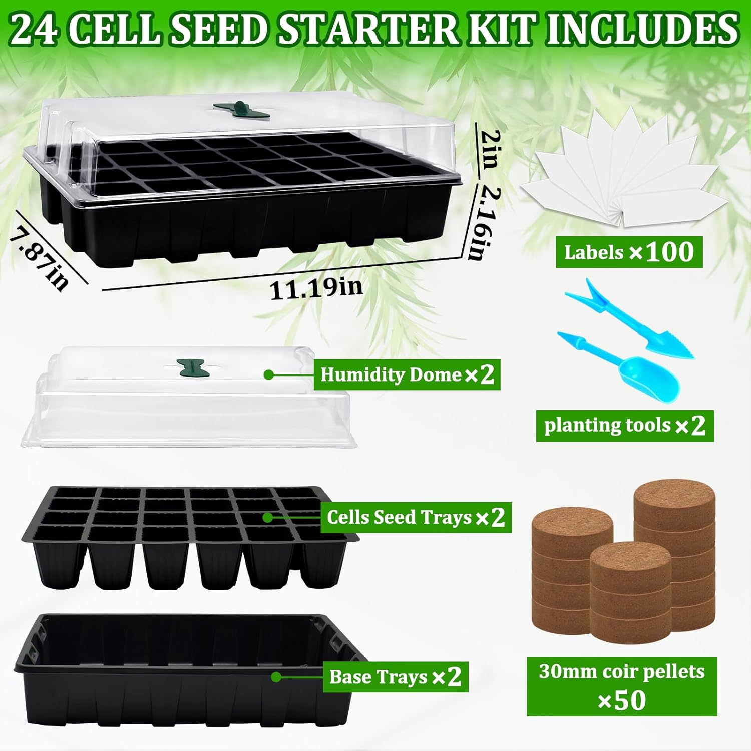 • Color : 2pcs 24cell Black Seed Trays+50 Coco Pellets