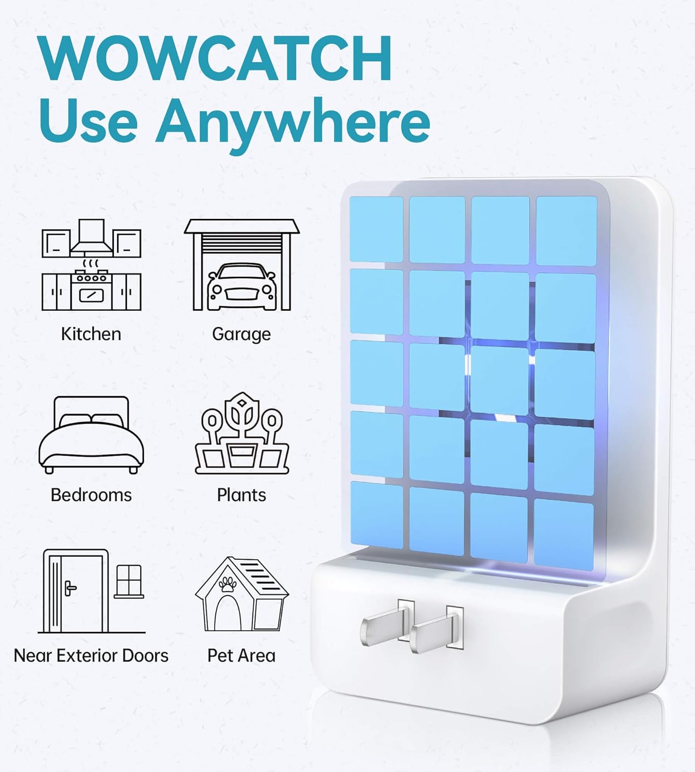 • [Highly Effective Indoor Fly Trap for Home] The WowCatch flying insect trap uses advanced Dual-UV Light technology, emitting light in five directions to effectively attract a variety of flying pests, such as mosquitoes, gnats, fruit flies, house flies, moths, and more.