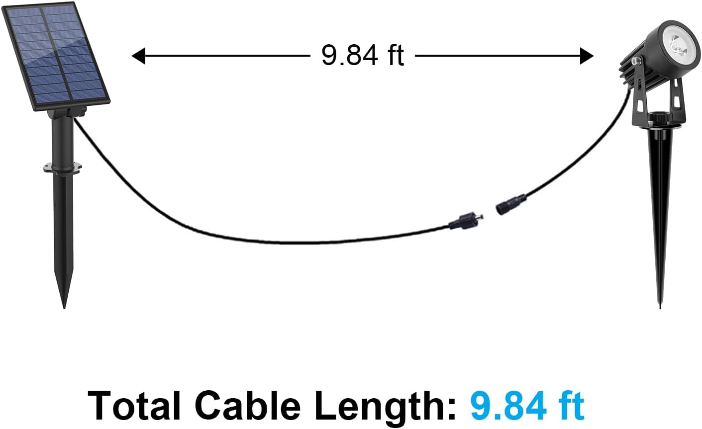 • 【2 installation methods】The solar panel and light can be installed in the ground or mounted on the wall with included screws. Each ground light with 118inch/3m cable, 270° Adjustable freely up or down to meet different requirements