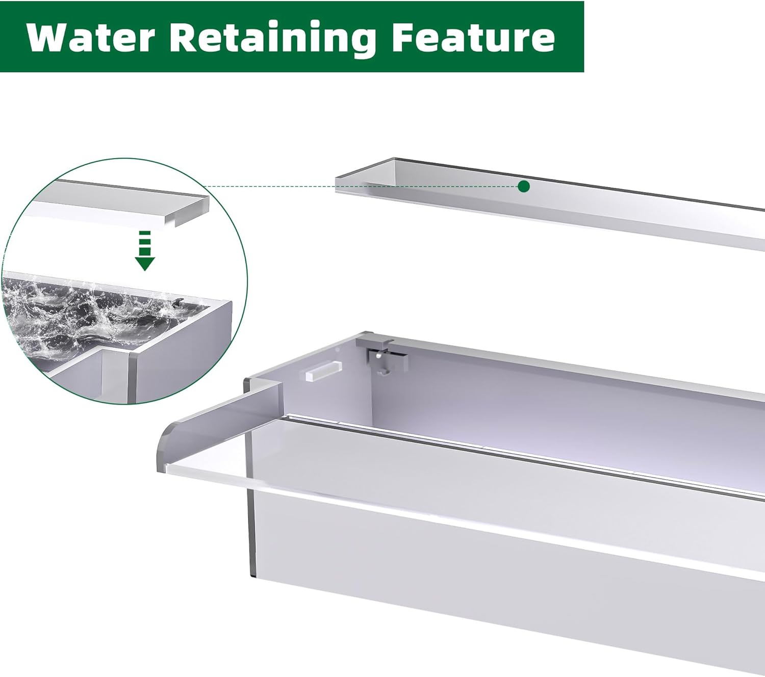 • 【One Year Replacement Committment】- This elegant cascading water feature requires a separately obtained pump for operation. We stand behind our products, and our dedicated support team is available to address inquiries regarding this product, offering prompt responses within a day. Please browse our other products for pool fountain accessories in our store. Waterfall only. LED light strips additional purchase.