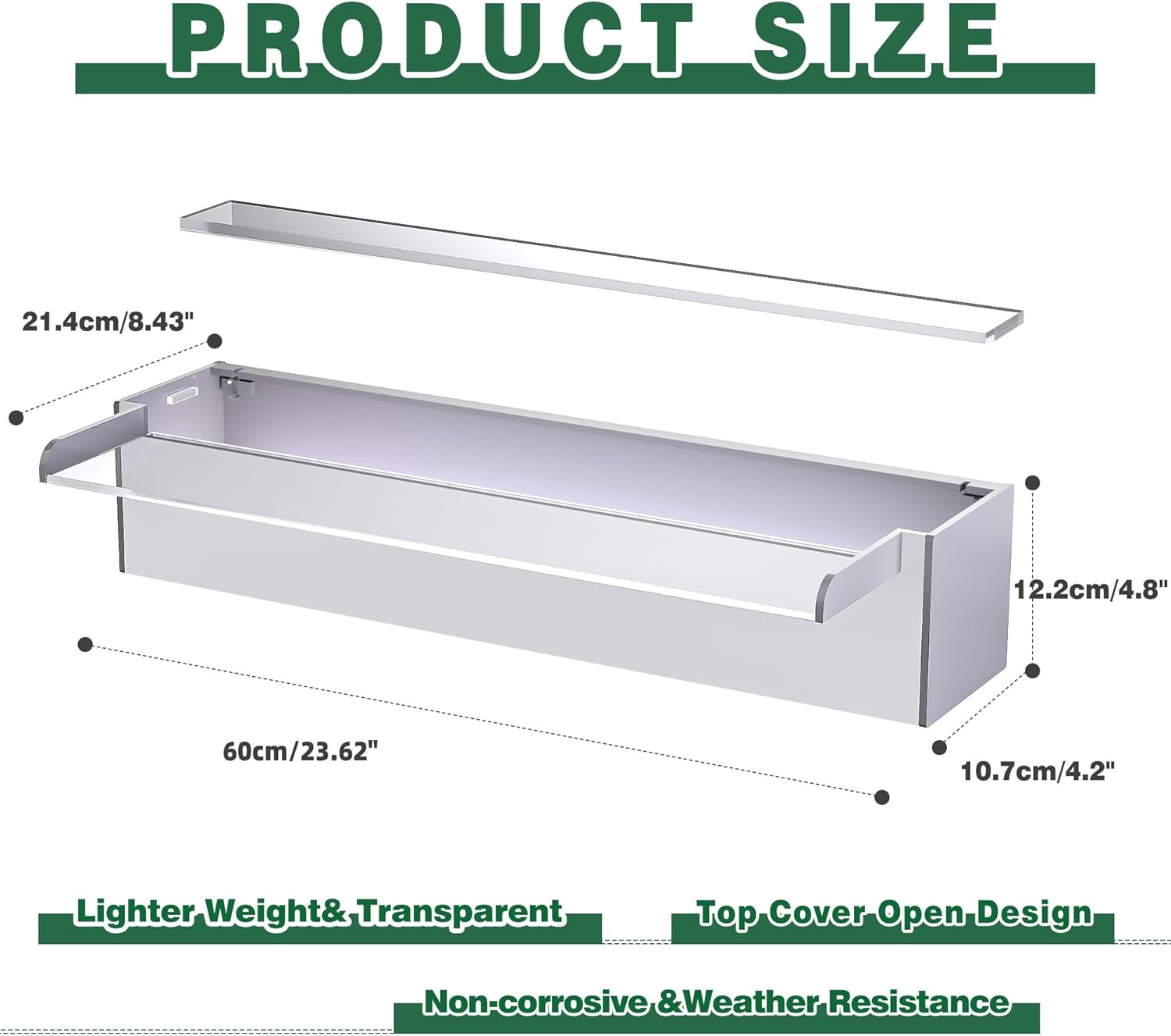 Pool Fountain, LONGRUNNEW Transparent Acrylic Pool Waterfall Spillway, 23.6 Inches Pool Water Feature for Garden Patio, Backyard Koi Pond Decor