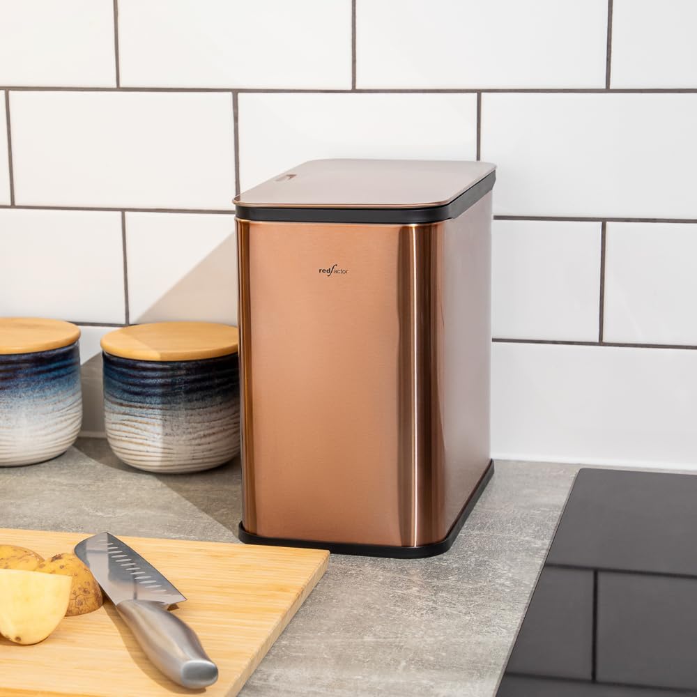 • Compact and Versatile Design – The RED FACTOR compost bin can hang on the inside or outside of your cabinet or be placed on your countertop, showcasing its sleek and stylish design. Thoughtfully crafted, it blends effortlessly into any modern kitchen while remaining highly functional.