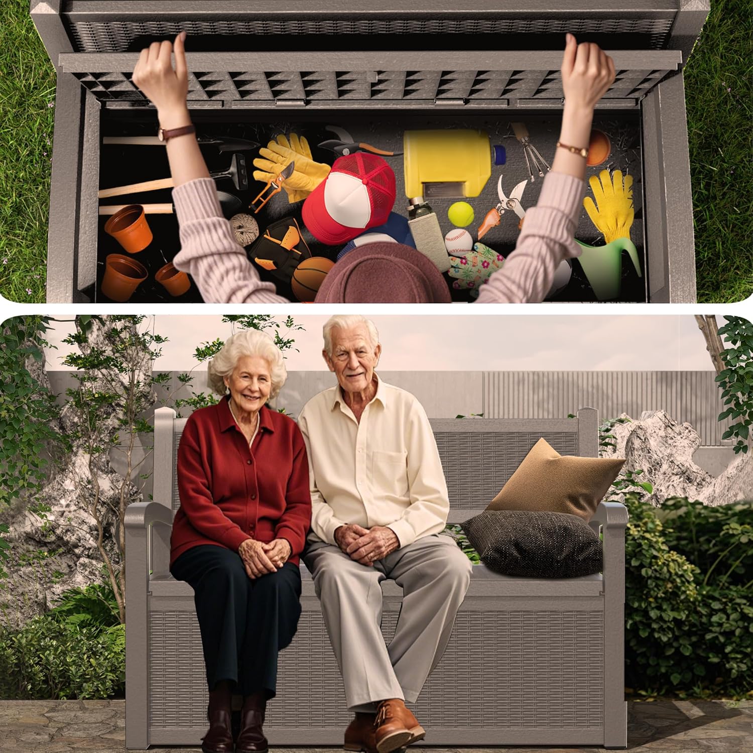 80 Gallon Outdoor Storage Bench Deck Box Waterproof Lockable,Outdoor Storage Furniture for Patio,Garden and Cushions(Gray)