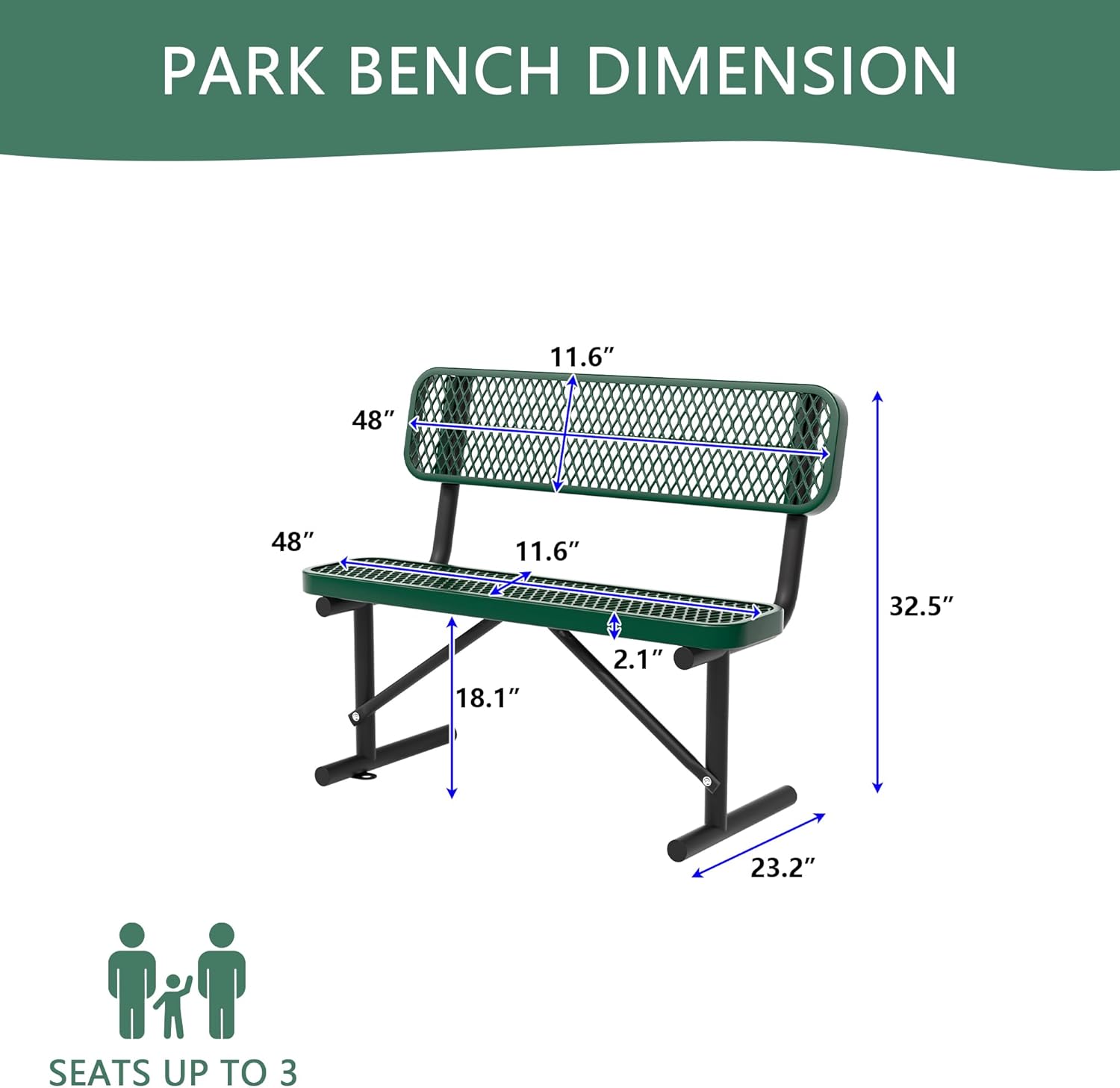 • ✦ Sleek and practical design: This heavy-duty park bench is an ideal choice for any indoor or outdoor space. Its open design not only reduces the weight of the chair, making it easy to carry, but also minimizes the accumulation of dust and moisture. Even in rainy or snowy weather, it can quickly dry and stay clean.