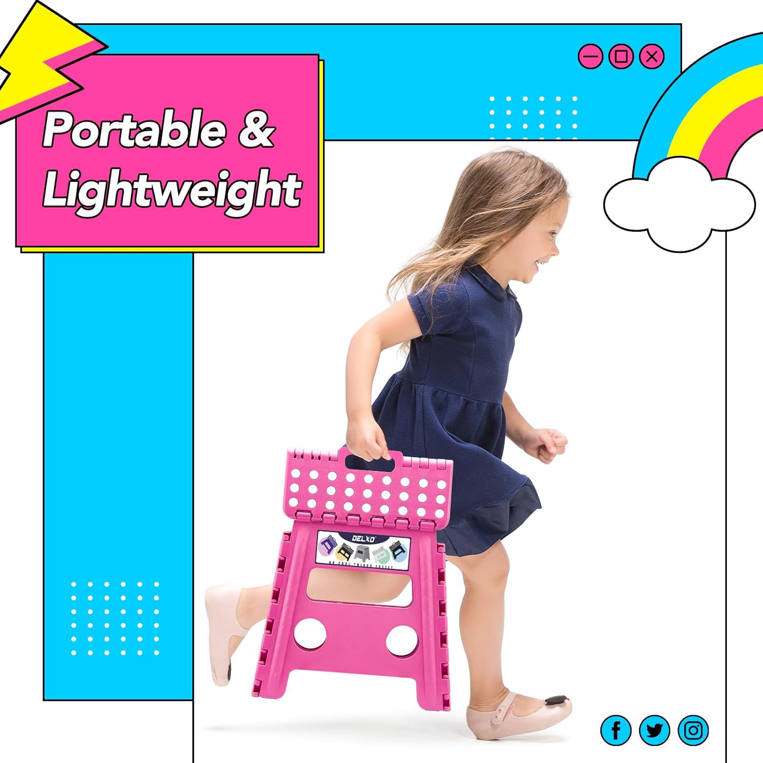 Delxo Folding Step Stool, 13 inch Non-Slip Foldable Stools for Kids & Adults Up to 300 LBS, Step Stool with Handle, Lightweight for Kitchen, Bathroom, Bedroom, Garden, Rose Pink, 1PC