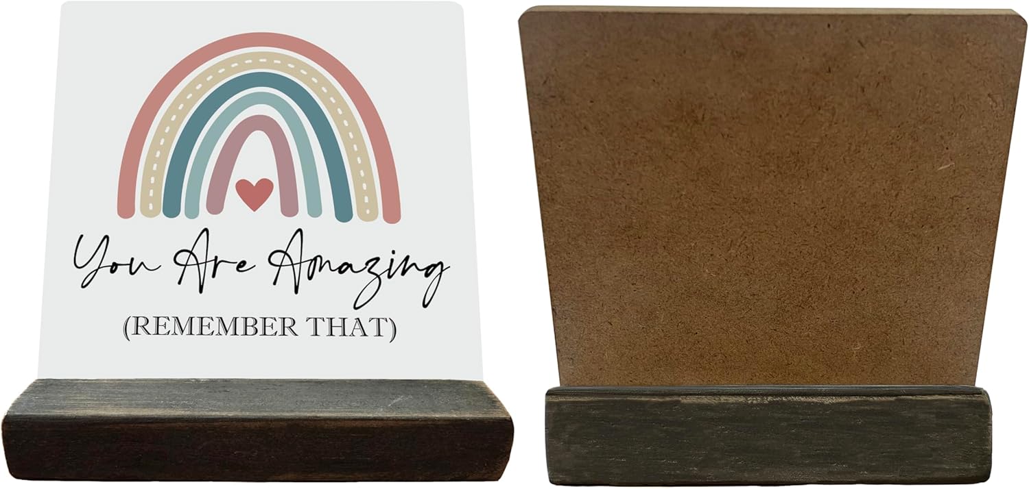 Primitive Wooden Sign, You are Amazing Remember That, Desk Plaque with Wooden Stand 4 x 4.3 inches, Rustic Home Decor, Farmhouse Sign, Inspirational Quotes Gifts for Friend Family, Cheer Up Gift A