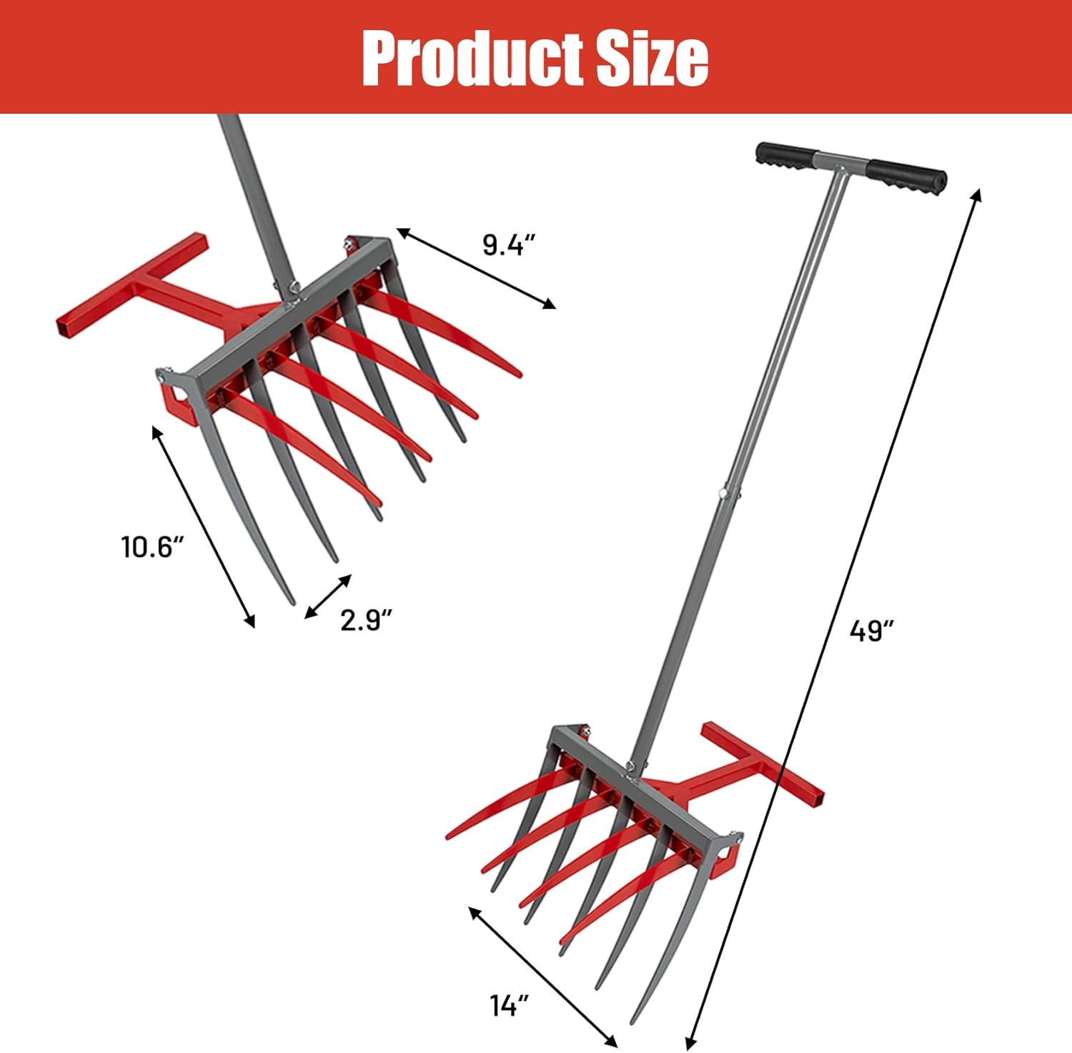 • USER FRIENDLY: Using this cultivator is a walk in the park. Simply plunge the fork into the ground and press down on the gray rod to lift and aerate the soil. It breaks the earth into manageable pieces, making it far more efficient than traditional single manual tillers.