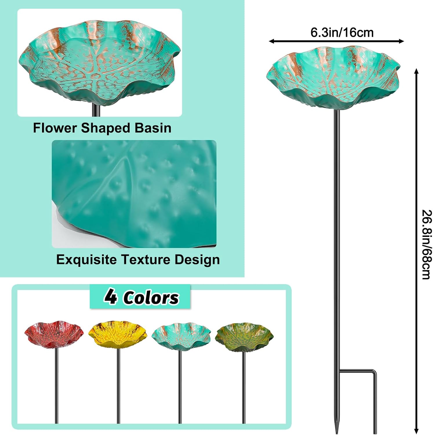 4PCS Hummingbird Bird Bath for Outside, Freestanding Metal Flower BirdBaths Bowl with Stake, Detachable Birdfeeder for Outdoor Yard Lawn Garden Decor (4PCS-Red-Yellow-Blue-Green)