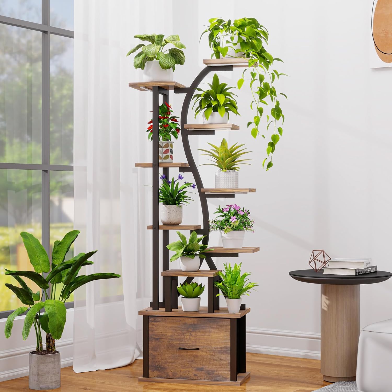 • 【Premium Wood & Metal Plant Shelf】Crafted from high quality wood and rust-resistant metal, this plant shelf is built to last. The moisture-proof and scratch-resistant surface ensures easy maintenance, while the waterproof coating protects against daily watering. Whether placed in the living room, balcony, or office, it blends effortlessly into any space.