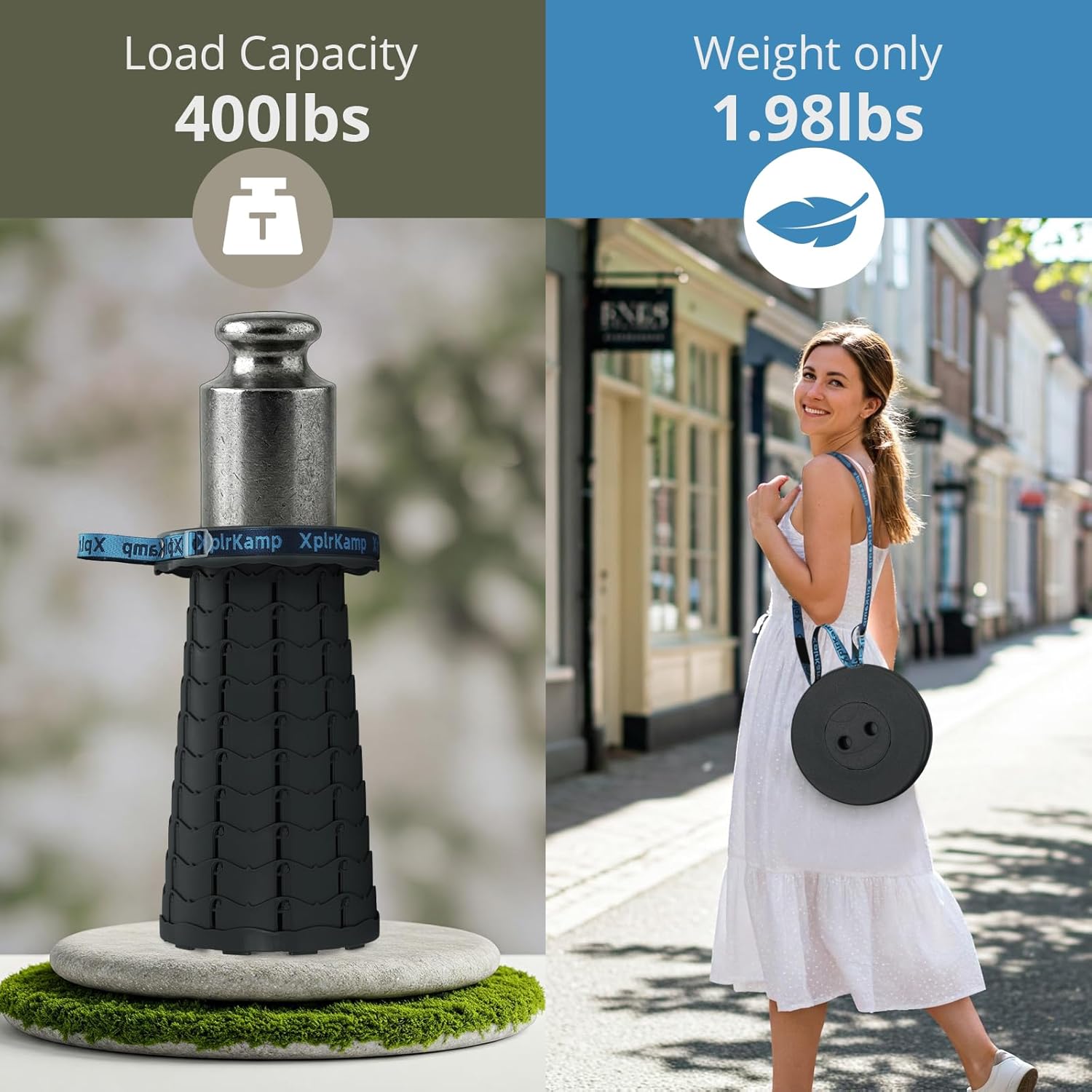 • Foldable & Portable: The XplrKamp foldable stool weighs only 1.98 lbs (0.9kg) with a collapsible size of 2.56"×9.84" (6.5×25cm).Features a 22-inch adjustable strap for shoulder carry or backpack attachment. Ideal as a camping stool for hiking, fishing,outdoor painting and picnics, while fitting seamlessly in cars, closets, or small spaces