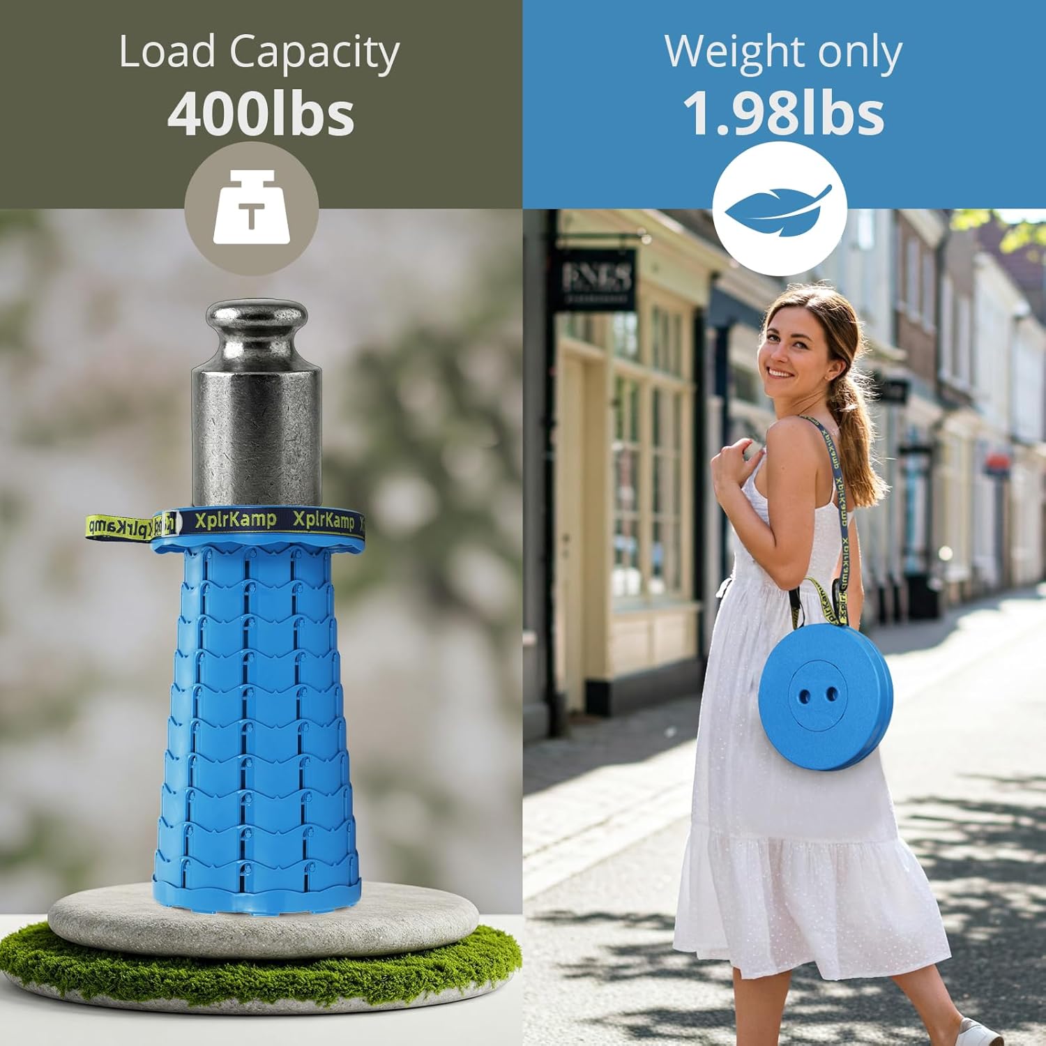 • Foldable & Portable: The XplrKamp foldable stool weighs only 1.98 lbs (0.9kg) with a collapsible size of 2.56"×9.84" (6.5×25cm).Features a 22-inch adjustable strap for shoulder carry or backpack attachment. Ideal as a camping stool for hiking, fishing,outdoor painting and picnics, while fitting seamlessly in cars, closets, or small spaces