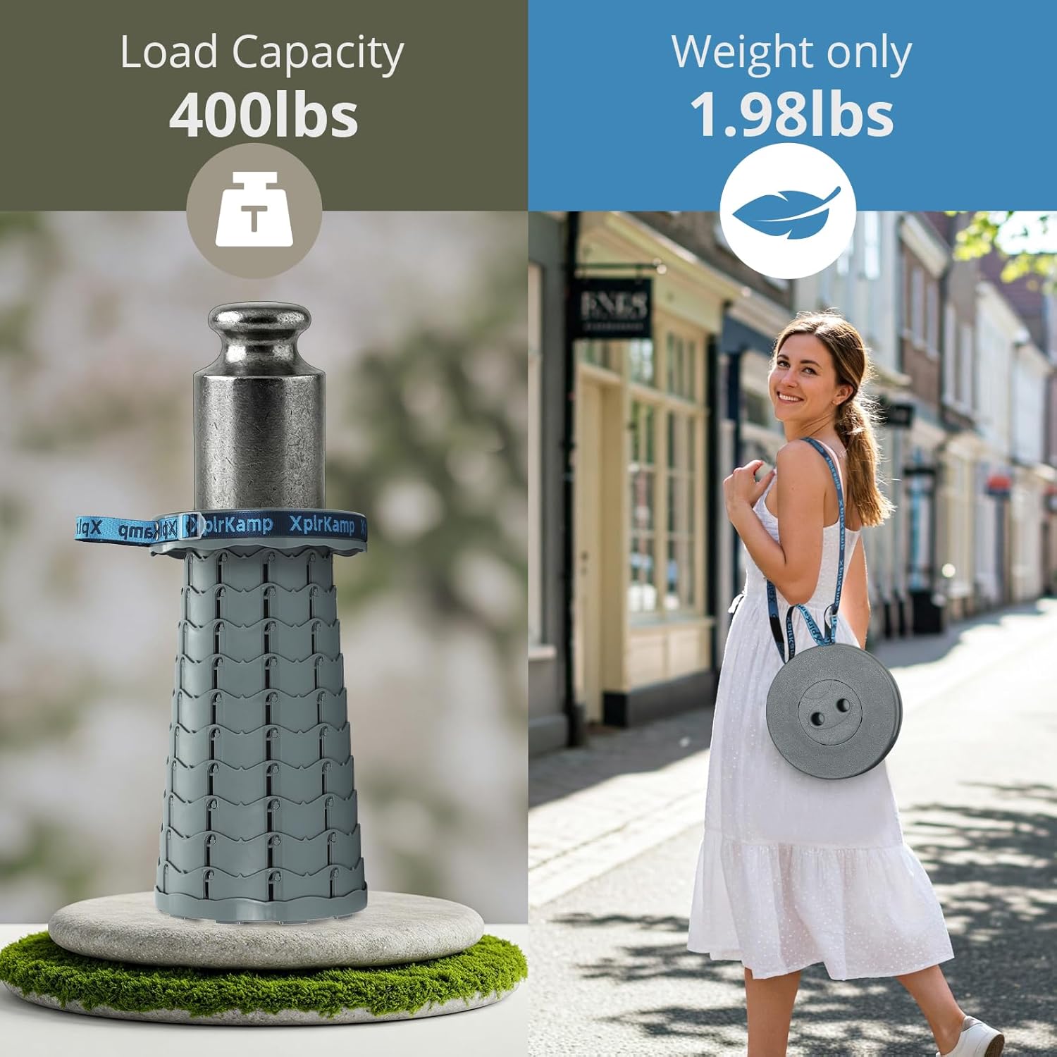 • Foldable & Portable: The XplrKamp foldable stool weighs only 1.98 lbs (0.9kg) with a collapsible size of 2.56"×9.84" (6.5×25cm).Features a 22-inch adjustable strap for shoulder carry or backpack attachment. Ideal as a camping stool for hiking, fishing,outdoor painting and picnics, while fitting seamlessly in cars, closets, or small spaces